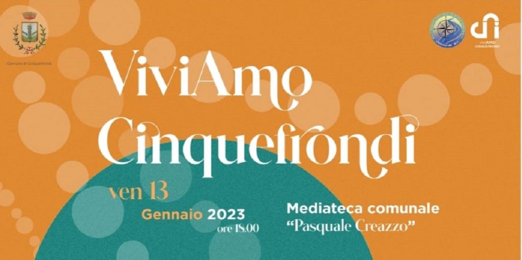 Venerdì 13 Gennaio presso la sede della Mediateca Comunale di Cinquefrondi, verrà presentato e illustrato il progetto “ViviAmo Cinquefrondi”. Un’idea di sviluppo, valorizzazione e implementazione di eventi culturali, integrativi e sociali, con tutta la Comunità. Saranno mostrate le iniziative che andranno a coprire l’intera durata del lavoro tramite slide, dichiarazioni dei promotori e protagonisti dello stesso.