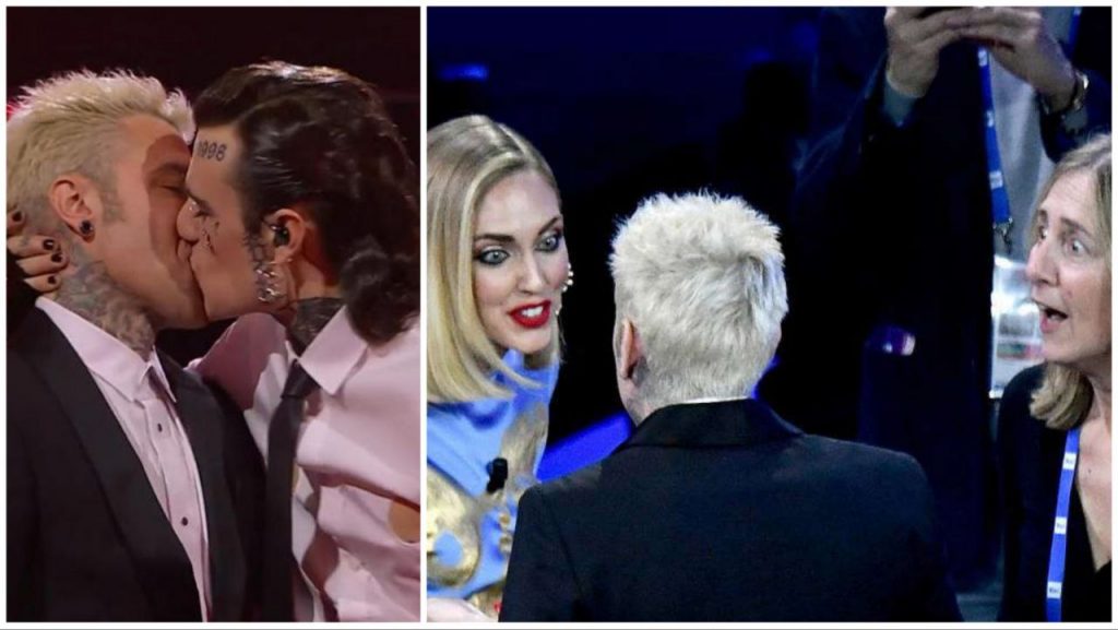 E quel bacio, del quale i due avevano parlato a “Muschio Selvaggio” con ironia, poi diventato realtà, potrebbe essere costato una ramanzina al povero Fedez. Sui social è diventato virale, infatti, un video ripreso dal pubblico che mostra un acceso confronto a telecamere spente tra Chiara Ferragni e Fedez. L’influencer sembra chiedere spiegazioni su quanto accaduto al marito che, dalla postura del corpo, appare come se volesse discolparsi. Amadeus, vedendo i due litigare, li invita a chiarirsi dietro le quinte.