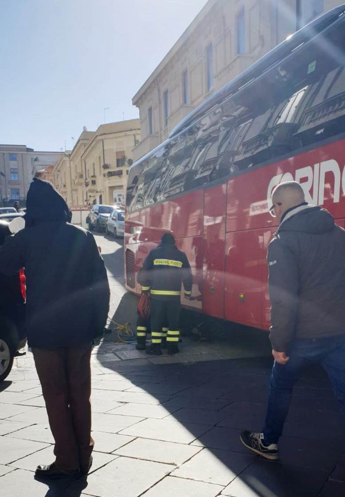 Da oltre 30 minuti un pullman è rimasto incastrato sul centralissimo Corso Garibaldi di Reggio Calabria e precisamente all’incrocio con via XXIV Maggio. Il grosso mezzo stava attraversando la via principale della città per raggiungere la via Marina quando è rimasto bloccato per un dislivello causato tra l’asfalto della discesa e la pavimentazione del Corso. Sul posto sono dovuti intervenire i Vigili del Fuoco che stanno lavorando per liberare il pullman. Al momento il Corso Garibaldi è completamente bloccato.