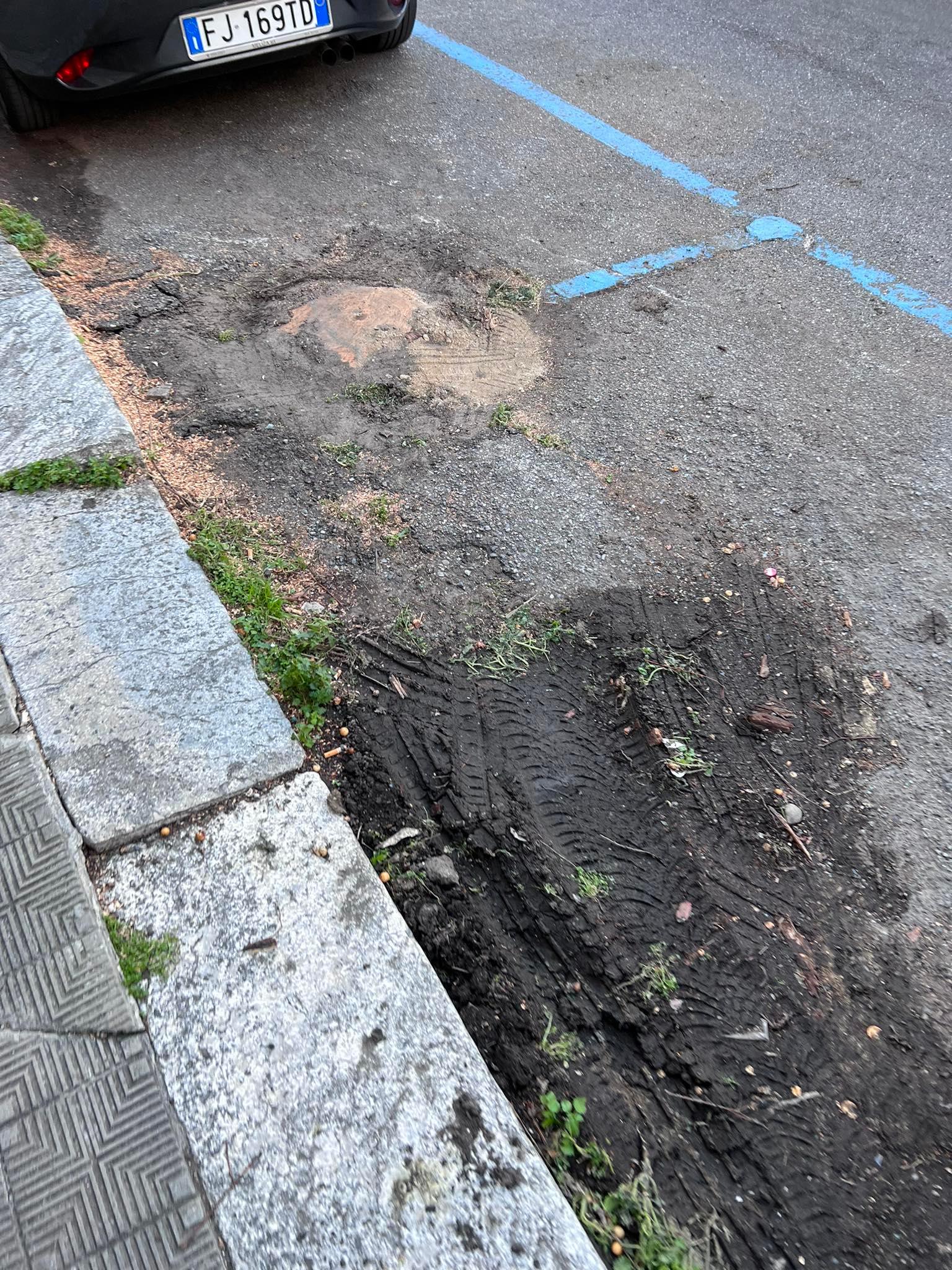 Poi c’è la favoletta che gli alberi abbattuti siano stati trapiantati “altrove” (ma nessuno specifica dove). Una favoletta, appunto. Anche un bambino sa che per trapiantare un albero, non va tagliato ma estratto con tutte le radici. Tutti gli alberi abbattuti intorno piazza De Nava, invece, sono stati tagliati di netto alla base, tanto che si può ancora vedere il tronco monco con tutte le radici sotterranee sul posto. Ecco le foto: