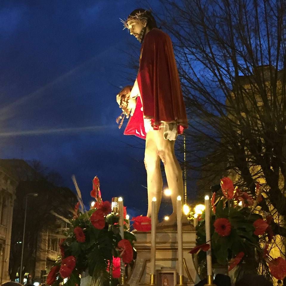 L’Adorazione della Croce è un momento suggestivo ed importante del Venerdì Santo. La Croce è il supremo simbolo della sofferenza e morte di Gesù, vero Dio e vero uomo che, con il suo sacrificio, ci ha riscattato dalla morte del peccato, indicandoci la vera vita che passa dalla sofferenza. Oggi i credenti sono chiamati all’astinenza dalla carne o ad osservare il digiuno ecclesiastico, consumando un solo pasto durante tutto il corso della giornata.