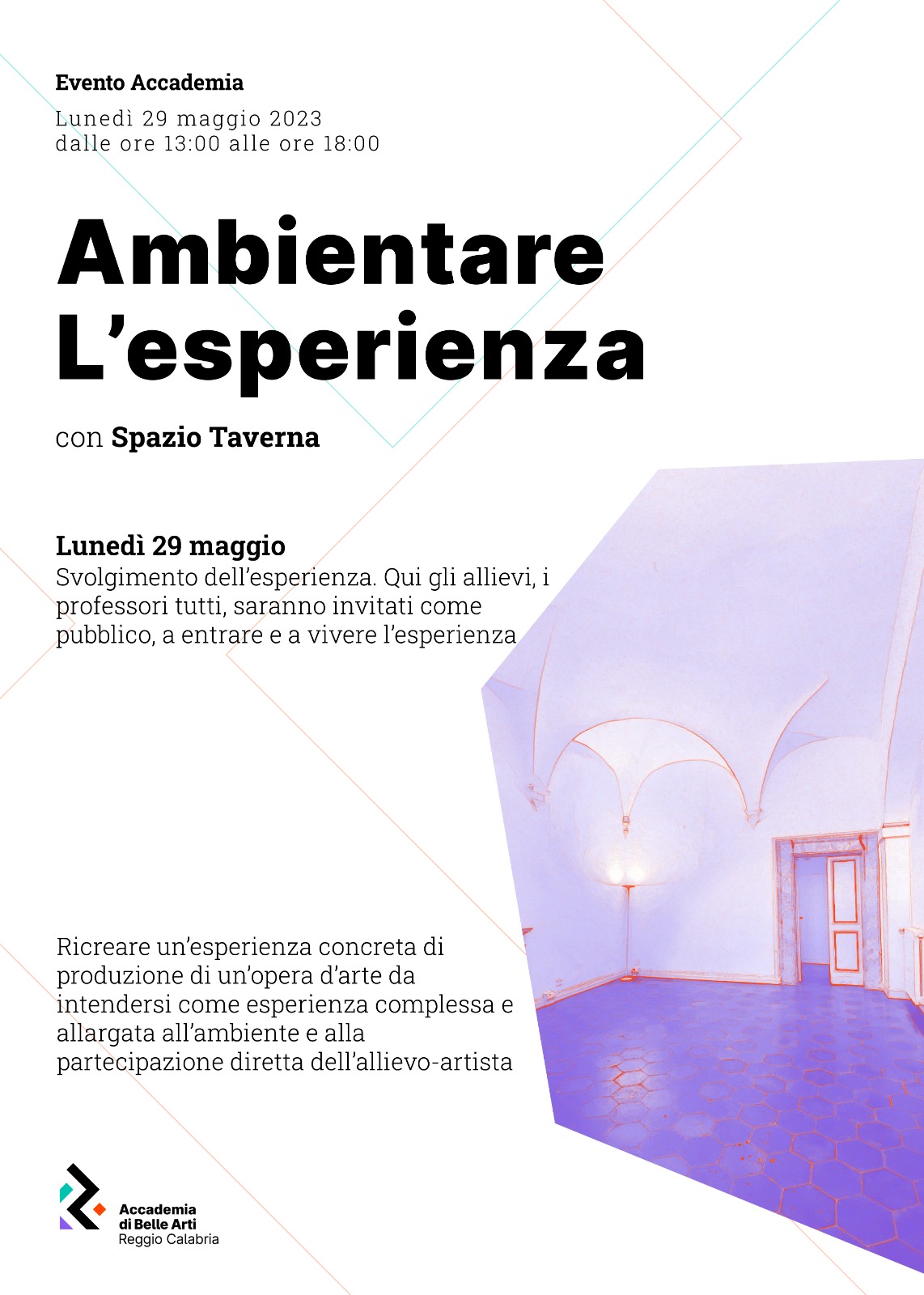 Il Progetto “Ambientare l’esperienza”, curato in sinergia tra l’istituzione accademica e i professionisti di Spazio Taverna, in sintonia con l’intento di innovazione espresso dal Direttore dell’ABARC prof. Pietro Sacchetti, è stato curato dal prof. Marcello Francolini con la supervisione del prof. Remo Malice e ha visto la partecipazione attiva degli allievi dell’Accademia.