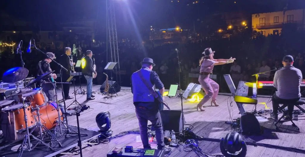 Nell’incantevole scenario di Praia a Mare, i Dirotta su Cuba hanno riproposto tutti i più grandi successi della lunga carriera, segnata da ben 8 album con oltre 30 super hit, come Gelosia, Io con te via da te, Liberi di-liberi da, Dove sei, Notti d’estate, È andata così, ma anche le accattivanti incisioni della loro nuova fase creativo-musicale. Dopo l’atteso ritorno sulle scene, infatti, il 18 gennaio 2019 hanno pubblicato Good Things, il loro primo brano in inglese: un pezzo pop-funk con incursioni gospel ispirato da un viaggio a Londra compiuto dal gruppo alla ricerca delle proprie radici musicali e del proprio sound. Il 6 settembre 2019 è arrivato poi Nothing Is Impossible, il brano che di fatto continua la nuova produzione in lingua inglese. Questo pezzo ha avviato un nuovo percorso che fonde le loro tipiche sonorità funky, gli arrangiamenti complessi ed estremamente ricchi dei loro live sottolineati dall’immancabile sezione di fiati, con le nuove tendenze black delle produzioni americane, a cui sono molto affezionati. Particolarmente apprezzata Thinking of You, il brano con cui hanno celebrato il venticinquesimo anniversario di “Dove Sei” , loro storico successo arricchito di nuove contaminazioni grazie alla collaborazione con il rapper americano Sonny King. Al termine della serata, dopo due ore in cui non si è certo risparmiata da autentica mattatrice, con grande generosità e disponibilità Simona Bencini si è concessa ai suoi tanti fan per foto e autografi.
