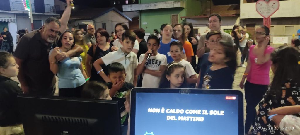 La piazzetta “Azzolina” è stata addobbata a festa dal gruppo, con colori, nastri, coccarde e striscioni dove sono stati riportati in maniera pittoresca e allegra, tutti i detti comuni dialettali eufemiesi e non solo, come è possibile vedere nella gallery fotografica scorrevole in alto. La serata è stata un successone, la piazza si è riempita. Un esperimento ben riuscito, dunque, in quanto a Sant’Eufemia d’Aspromonte una serata così, con karaoke e balli, non si ricorda da tempo. Il divertimento è stato l’elemento comune di tutti i partecipanti.