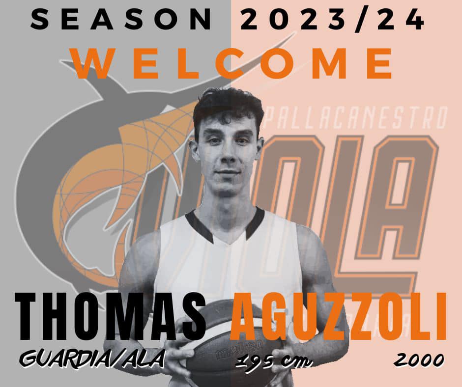 Aguzzoli ha militato per la BMR Basket di Reggio Emilia nella scorsa stagione in C Gold dove ha chiuso in doppia cifra di media. Precedentemente ha giocato anche in B con la Luciana Mosconi Ancona per due annate agonistiche, intervallate da una parentesi con la Sutor Montegranaro. Si è messo in mostra nelle giovanili della Pallacanestro Reggiana, facendosi successivamente trovare pronto ad ogni chiamata. Thomas è un atleta che possiede fisicità e talento e che sicuramente potrà dare molto alla causa neroarancio. “Sono molto contento di entrare a far parte di questa squadra. Non vedo l’ora di iniziare e cercherò di farmi trovare pronto”.