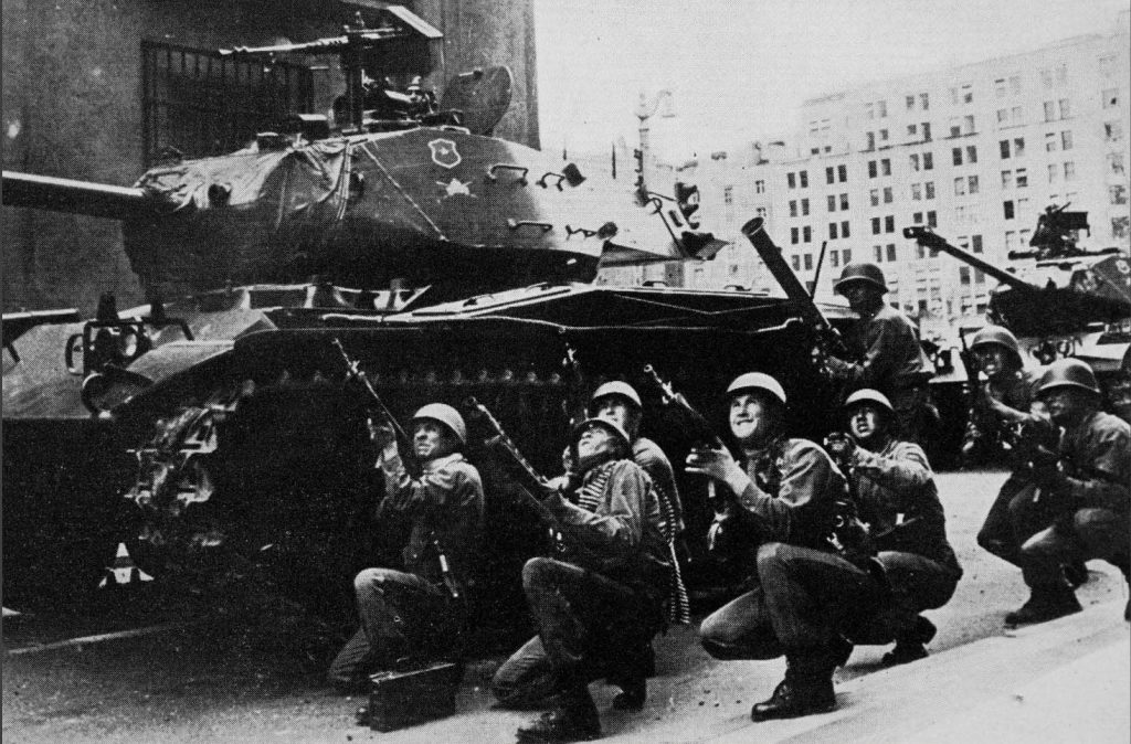 Timorosi che un altro Paese passasse dalla parte dell’Unione Sovietica nel pieno della Guerra Fredda, gli Stati Uniti avevano attivato, già prima dell’elezione di Allende, una serie di azioni di influenza e spionaggio per impedirne l’elezione. Dopo Cuba, persa ormai nella rivoluzione del 1959, gli USA non potevano permettersi che l’avanzata comunista si diffondesse nei Paesi del sud America. I finanziamenti alle campagne politiche dei partiti dell’opposizione non furono però sufficienti e dopo l’elezione di Allende gli USA furono costretti a passare alla fase due, al fine di evitare che il Paese potesse diventare «comunista a causa dell’irresponsabilità del suo popolo […] la questione è troppo importante perché gli elettori cileni possano essere lasciati a decidere da soli», come dichiarato da Henry Kissinger, consigliere per la sicurezza nazionale e segretario di Stato durante la presidenza di Richard Nixon. Alla guida di un’ampia coalizione di sinistra, l’Unidad Popular, Allende iniziò subito a muoversi per realizzare un nuovo socialismo democratico, che lui stesso definì “Una rivoluzione che sa di empanada e vino rosso”. Vennero aumentati i salari e le tutele sociali, approvata una riforma agraria volta a una più equa redistribuzione delle terre e annunciata la sospensione del pagamento del debito estero, e venne inoltre introdotto il divorzio e legalizzato l’aborto. La mattina dell’11 settembre, con il bombardamento delle sedi radio e tv di Santiago del Cile, le forze armate capeggiate dal generale Pinochet iniziarono “l’Operazione silenzio”, volta a destituire il Presidente Allende.