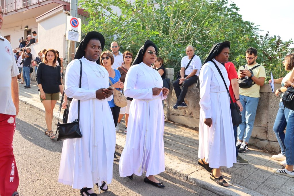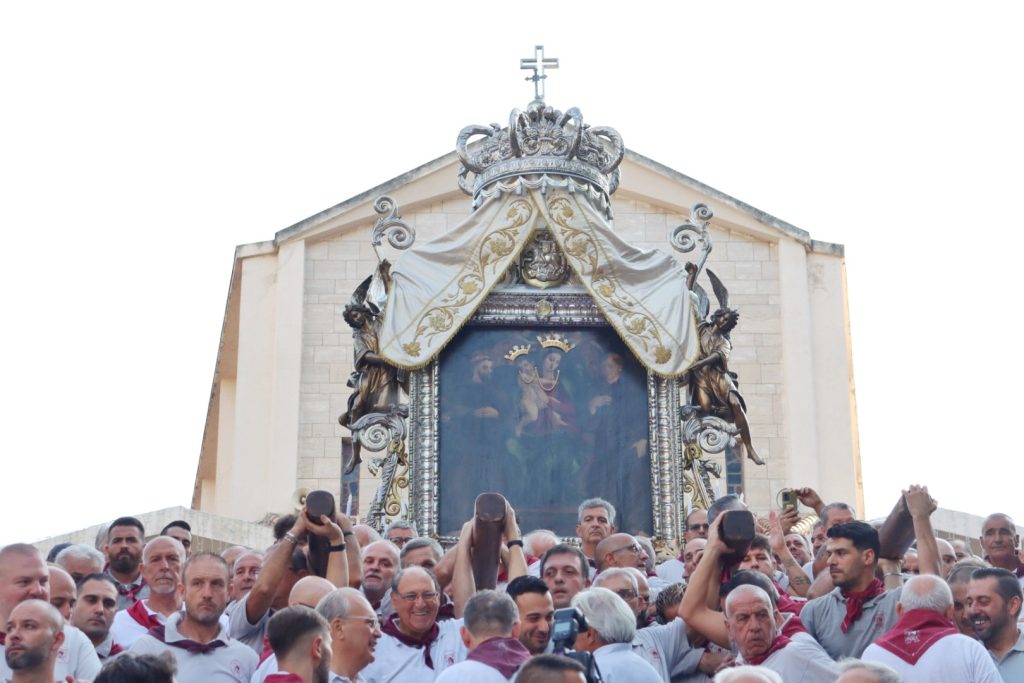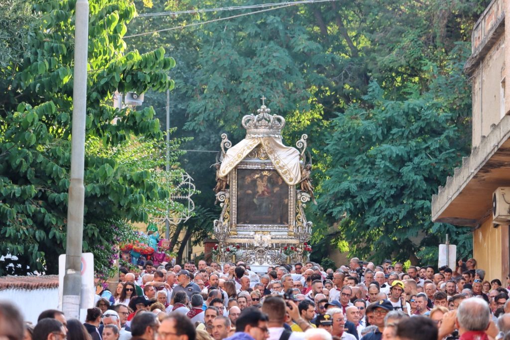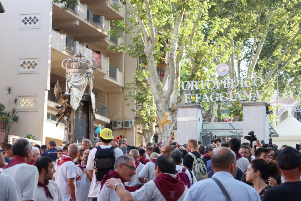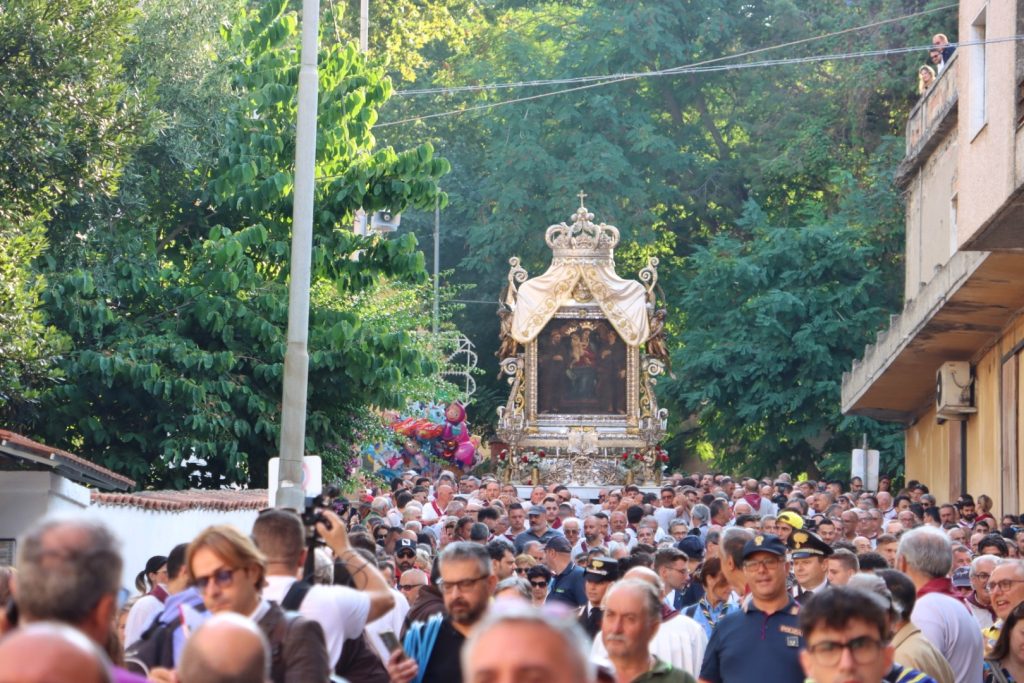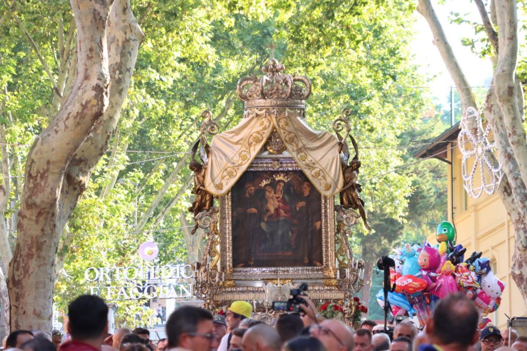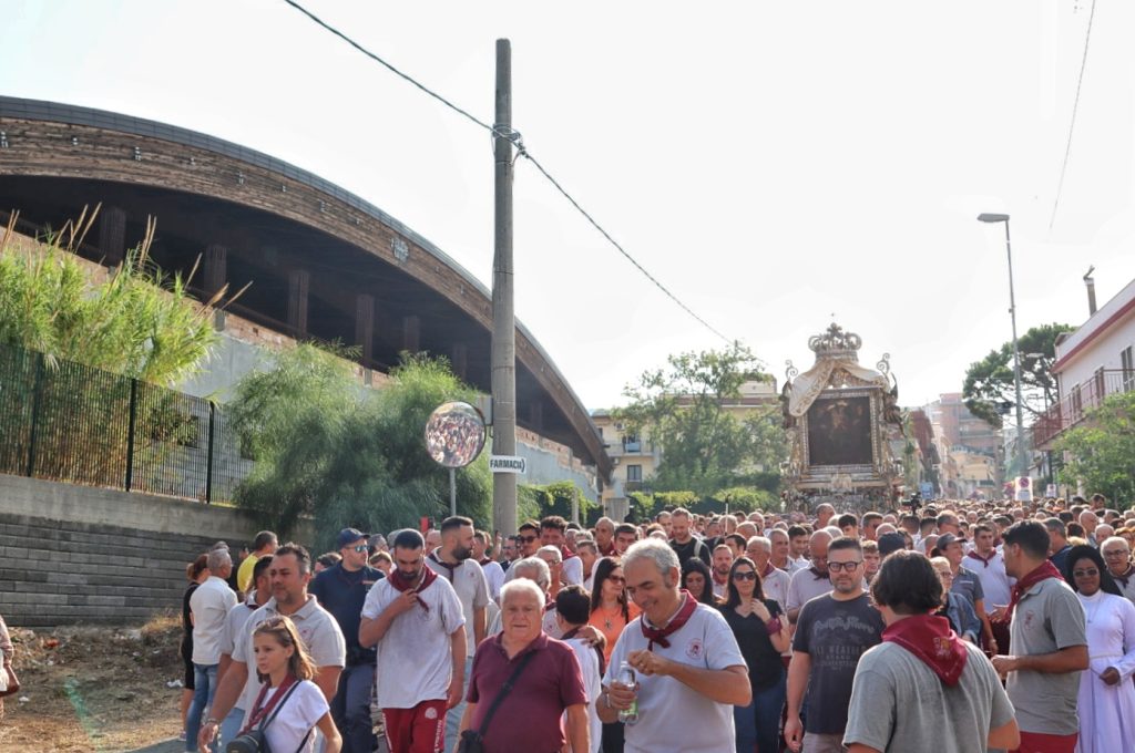 La Sacra Effigie è accompagnata dalla consueta folla di fedeli e durante il tragitto ha attraversato le strutture abbandonate del quartiere di San Giovannello. Quest’anno per riprendere un’antica tradizione è stato donato un omaggio floreale alla Madonna con la deposizione sul Quadro di 3 bouquet di fiori.