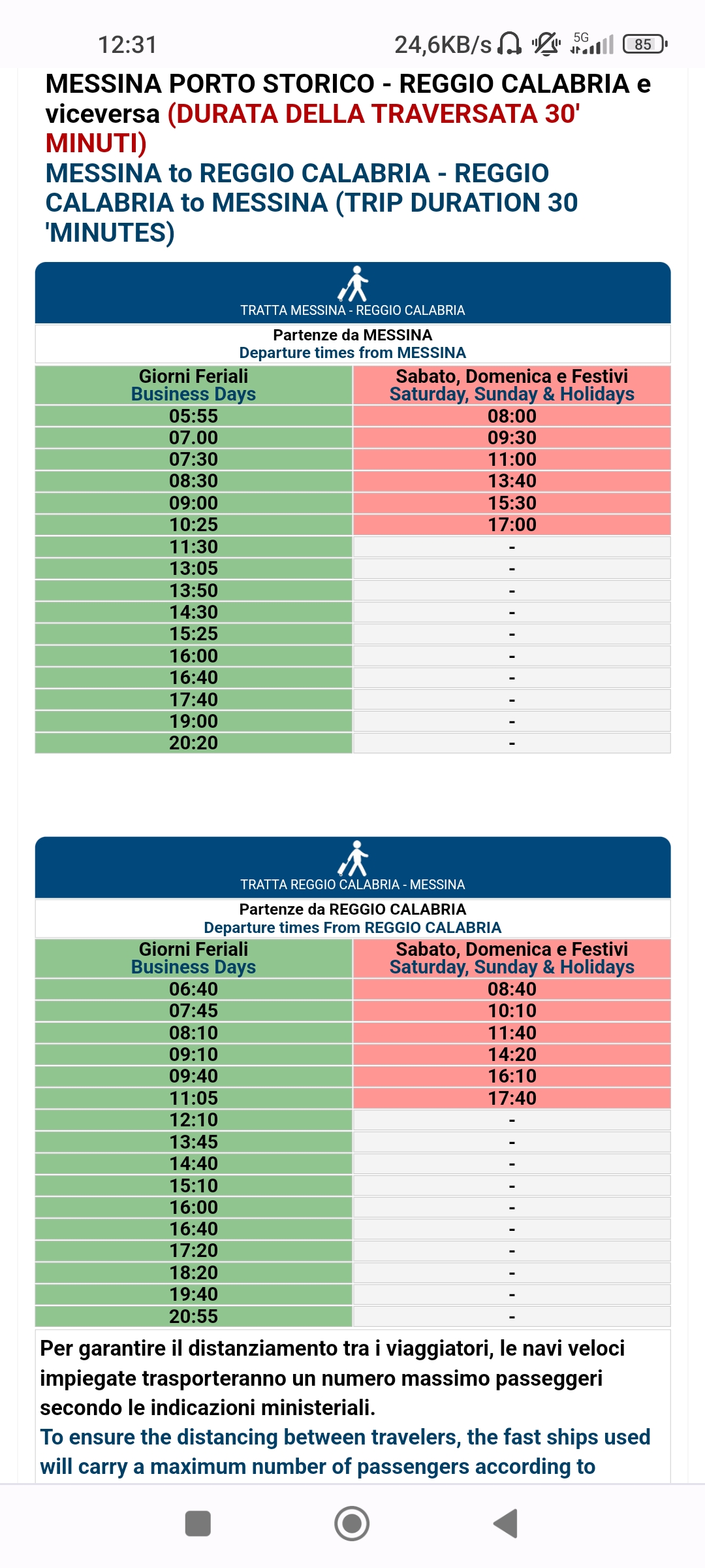 Siete, dal 1º Ottobre 2023, il nuovo operatore di trasporti della già esistente tratta Reggio Calabria – Messina. Occorrerebbe apportare dunque miglioramenti, come magari anche il sabato, nei riguardi di coloro che non hanno la settimana corta, lavorano anche il prefestivo e sono costretti, da abbonati, a viaggiare da Villa San Giovanni ed anche con più mezzi (aliscafo e Caronte), con ulteriori aggravi non solo economici.