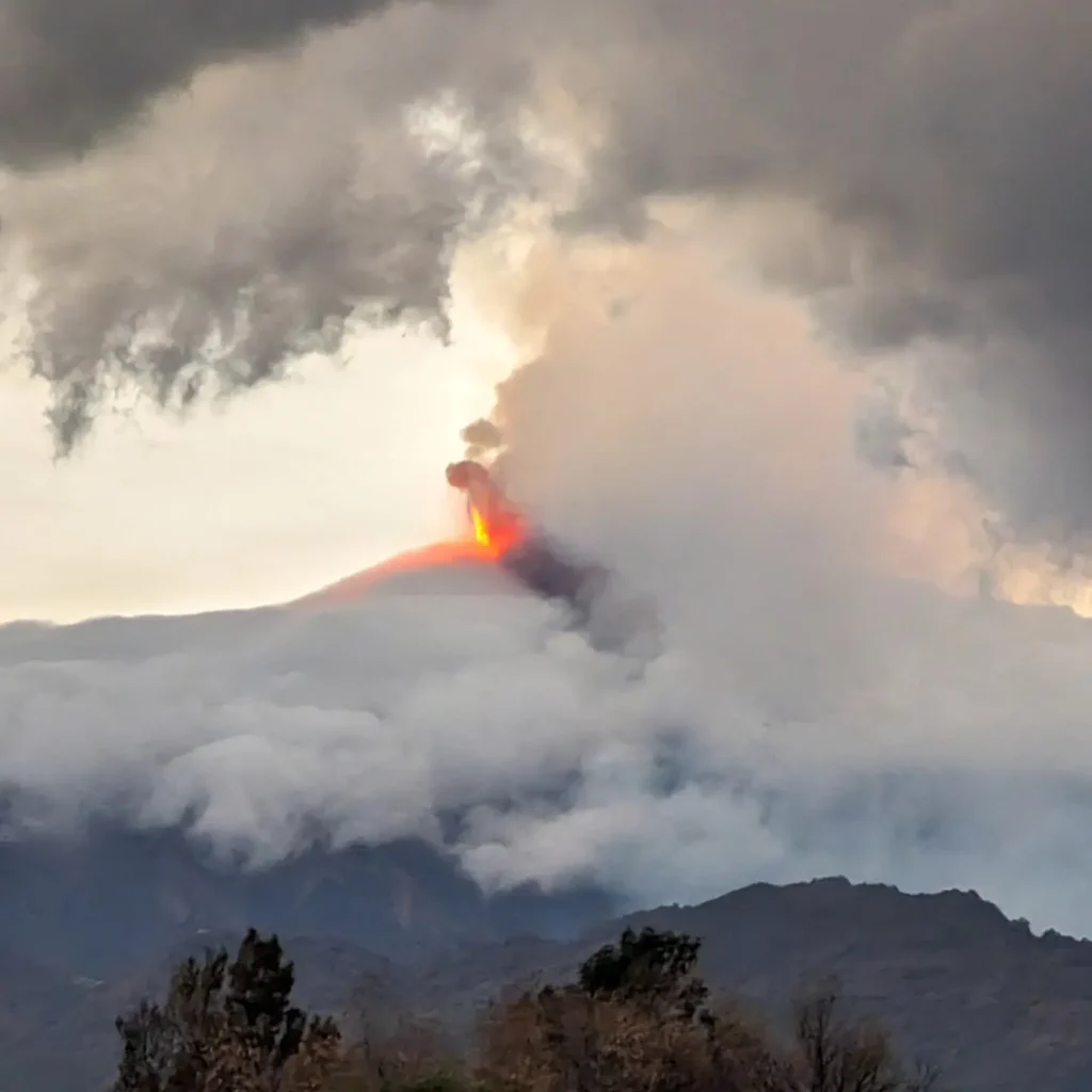 Inizia una nuova attività dell’Etna anche se non si tratta di un qualcosa di molto intenso ma è sufficiente a creare uno spettacolare bagliore rosso visibile anche da tutta l’area dello Stretto di Messina. L’Istituto Nazionale di Geofisica e Vulcanologia, Osservatorio Etneo, comunica cha “da personale INGV sul campo è stata segnalata ricaduta di cenere nel paese di Milo. Il tremore vulcanico è ulteriormente aumentato” rispetto a quanto comunicato nel precedente aggiornamento, “restando localizzato in corrispondenza del Cratere di Sud-Est”. “Anche l’ampiezza del segnale infrasonico è aumentata e gli eventi restano localizzati prevalentemente al SEC. La stazione clinometrica sommitale PDN registra a partire dalle 14:40 UTC circa una variazione di trend, cumulando comunque minime variazioni al di sotto di un microradiante. Le stazioni GNSS ad alta frequenza non registrano allo stato attuale variazioni superiori al rumore di fondo”, conclude l’INGV-OE.