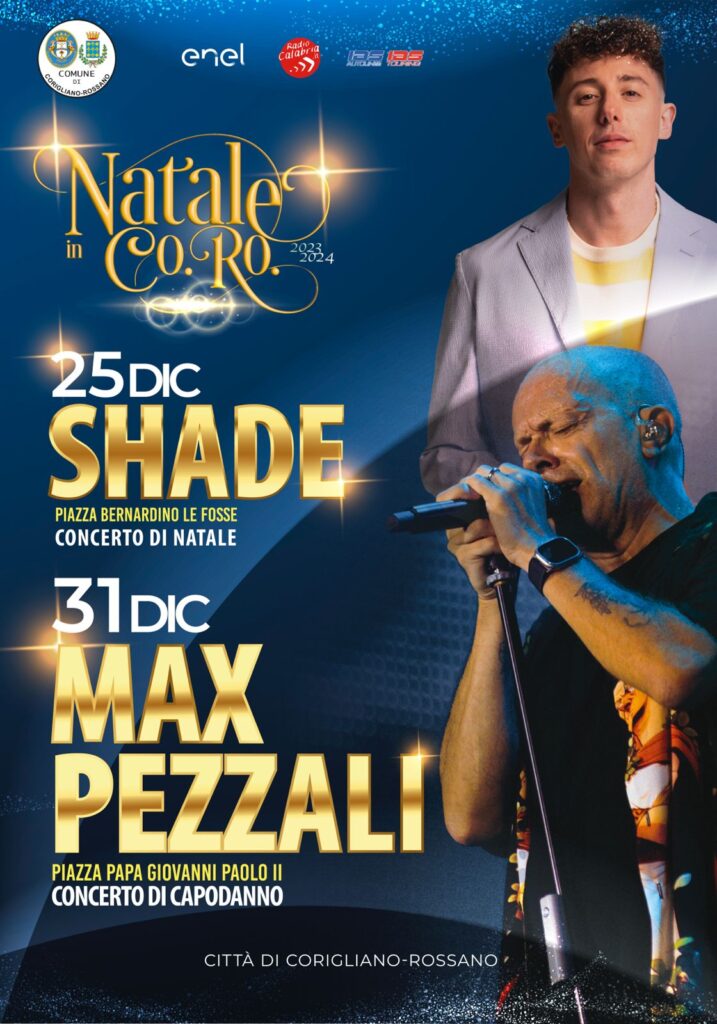 Fervono i preparativi per il concerto di Natale di Shade, evento clou della programmazione natalizia del comune di Corigliano-Rossano, che la sera del 25 dicembre vedrà esibirsi uno degli idoli più amati dai giovani che porterà sul palco anche le canzoni del suo ultimo album, che ha già guadagnato vari traguardi come i dischi platino, senza dimenticare i successi come Bene ma non Benissimo e gli altri, accompagnandoli con una forte dose di freestyle, per il quale ha un’attitudine naturale.