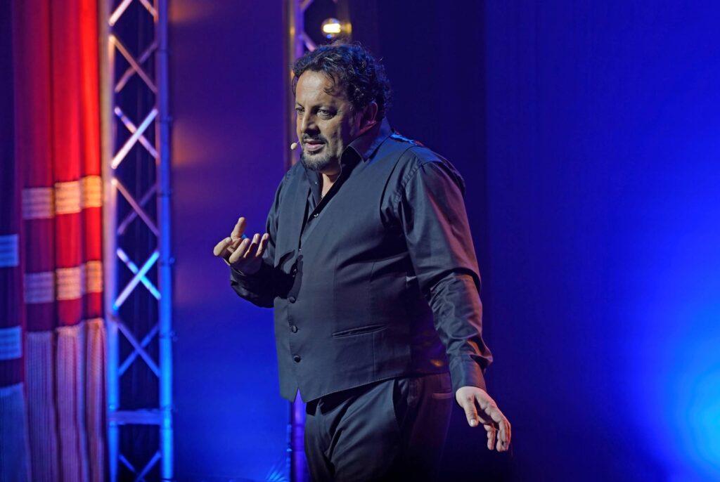 Anche a Catanzaro si è avuta la conferma che l’ex allievo di Gigi Proietti oggi è un indiscutibile maestro della comicità e del miglior teatro leggero italiano. Al termine, anch’egli visibilmente contento per il calore e l’accoglienza, dopo un ultimo esilarante racconto della storia tra Psiche ed Eros, ha regalato alcune copie del suo libro “Non facciamone una tragedia” (edito da Einaudi) agli spettatori che hanno compiuto gli anni proprio ieri. Strameritato il Riccio d’Argento dell’orafo calabrese Gerardo Sacco, premio ai Migliori Live d’Autore di “Fatti di Musica”, il festival diretto da Ruggero Pegna giunto alla 38°edizione, che ha organizzato l’evento insieme alla Fondazione Politeama.