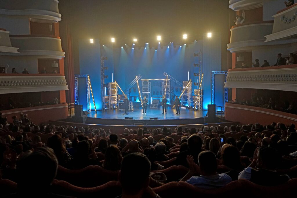 E’ stato un vero trionfo la prima delle due serate del grande spettacolo di Enrico Brignano andato in scena ieri sera in Teatro Politeama di Catanzaro gremito in ogni ordine di posti. Sono arrivati da tutta la regione, infatti, per assistere all’irresistibile “Ma… diamoci del tu!”, scritto con Manuela D’Angelo, la collaborazione ai testi di Alessio Parenti e le musiche originali di Andrea Perrozzi. E stasera si replica alle ore 21:00 con altri mille spettatori pronti ad invadere il suggestivo centro storico del capoluogo calabrese e il bellissimo Teatro progettato da Paolo Portoghesi.