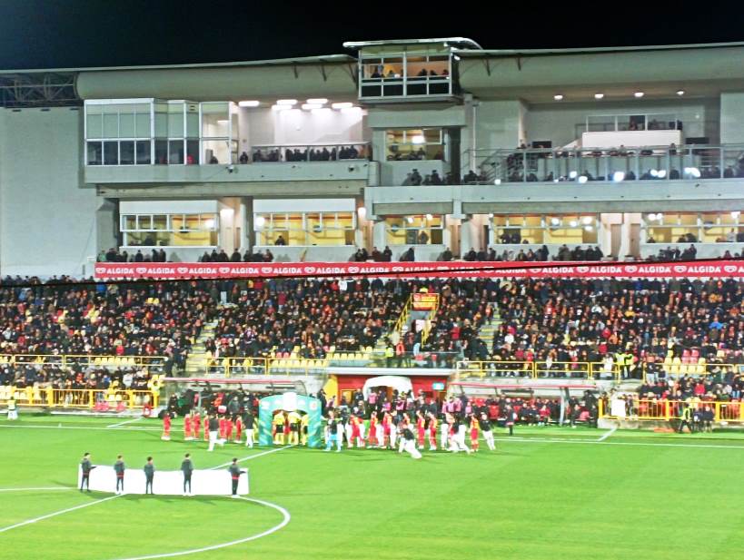 Né vincitori e né vinti. Alla fine Catanzaro e Palermo non si fanno male. L’anticipo playoff di Serie B, il derby del Sud calabro-siculo, finisce 1-1. Un gol per tempo al Ceravolo, vestito a festa per l’occasione, anche per la folta presenza di tifosi rosanero nel settore ospiti (che hanno lanciato dei fumogeni provocando la sospensione della partita per qualche minuto).
