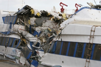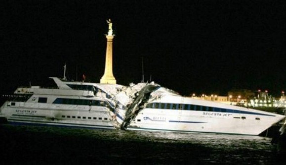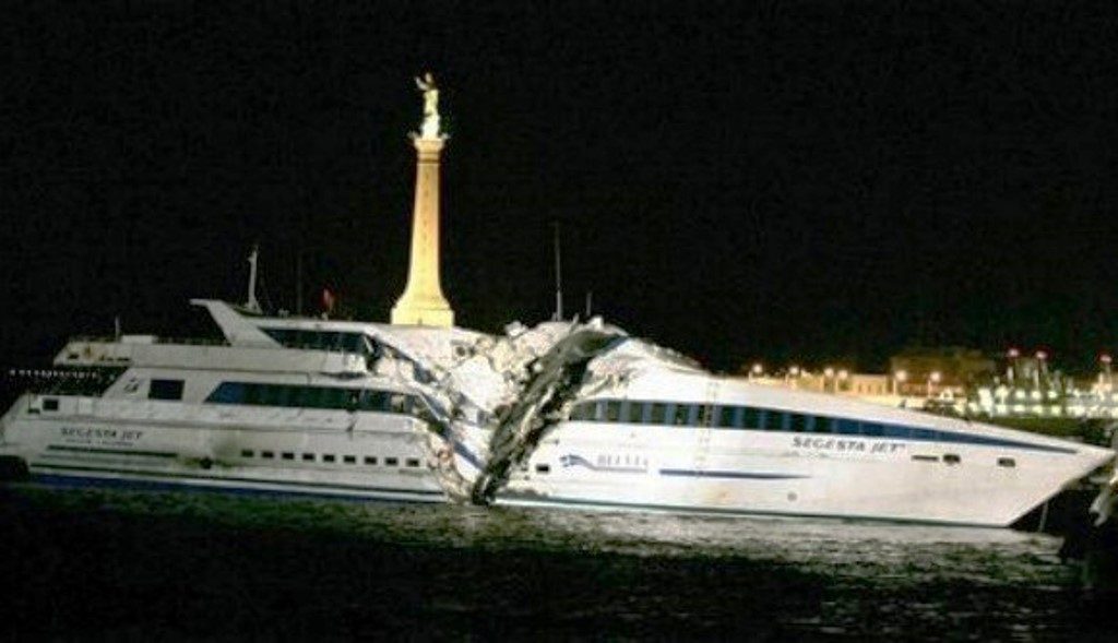 L’impatto fu devastante: l’aliscafo venne letteralmente squarciato e quattro persone persero la vita. I feriti furono circa un ottantina. I corpi senza vita, ritrovati incastrati tra le lamiere, erano quelli del comandante Sebastiano Mofodda, del direttore di macchina Marcello Sposito, del motorista Domenico Zona e del marinaio Lauro Palmiro.