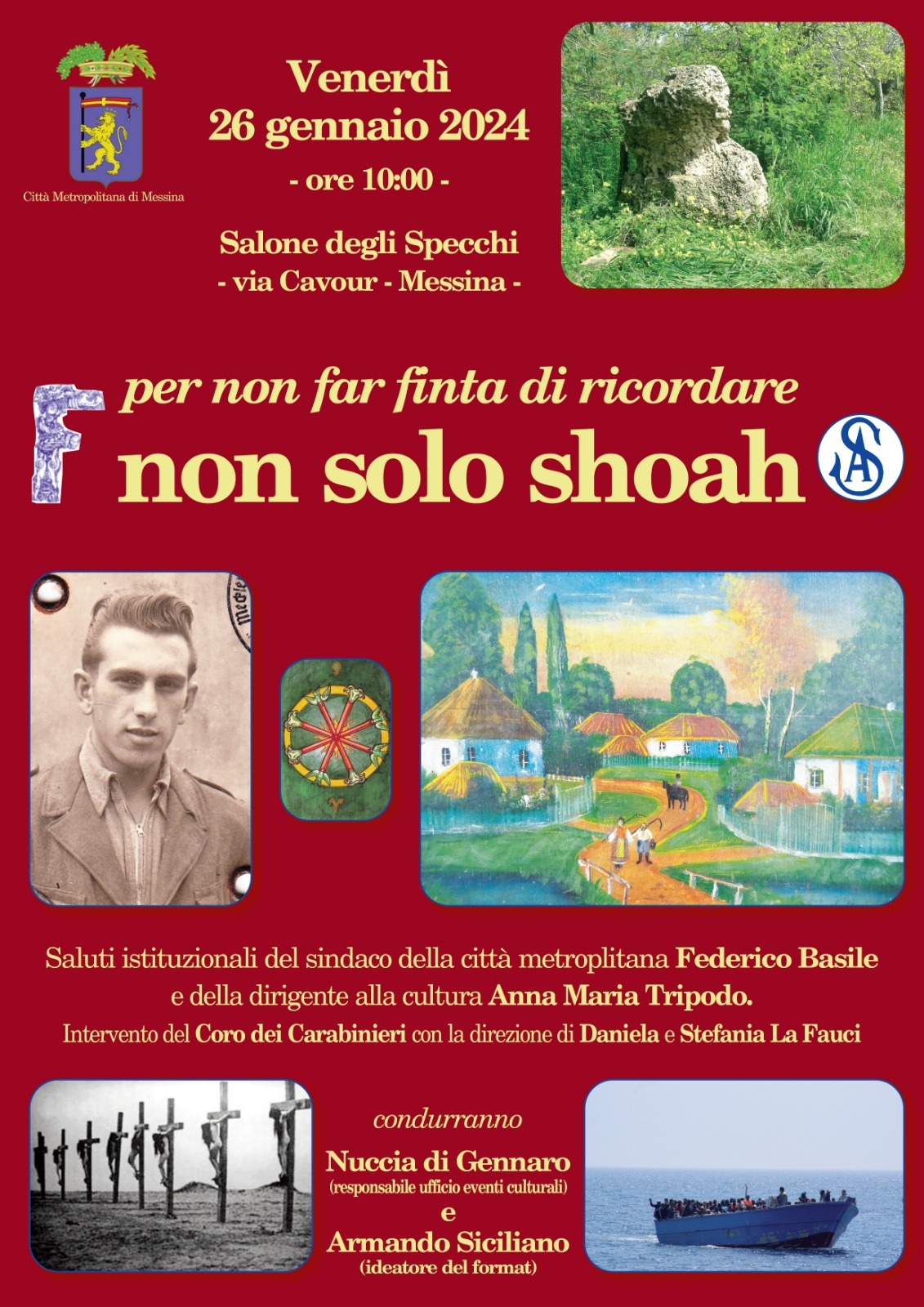 In prossimità della celebrazione della Giornata delle Memoria, la Città Metropolitana di Messina, aderendo allo spirito e alle finalità di questa ricorrenza, organizza a Palazzo dei Leoni, venerdì 26 gennaio 2024 dalle ore 10.00, un incontro dal titolo “Per non far finta di ricordare. Non solo Shoah”.