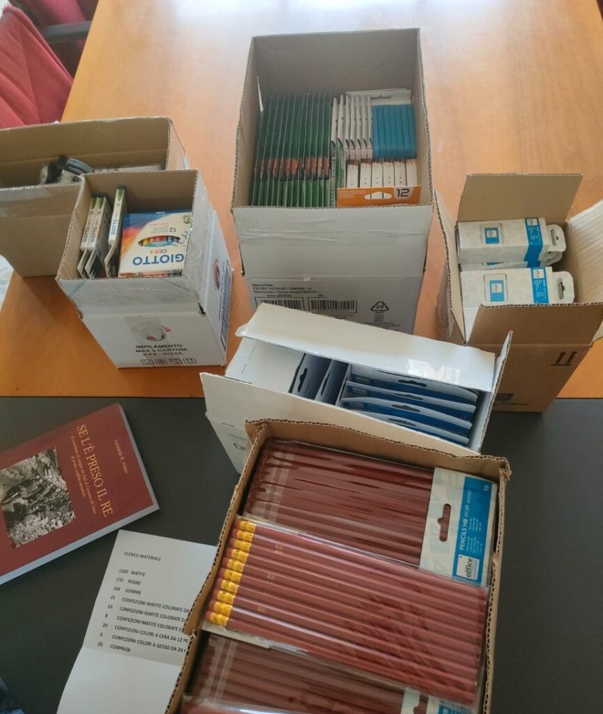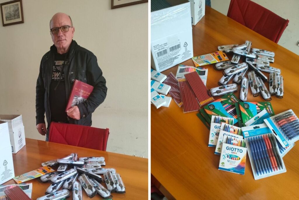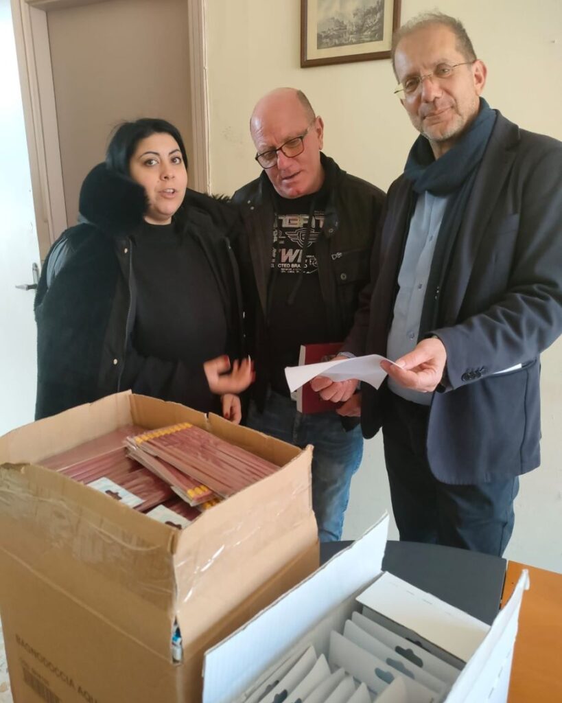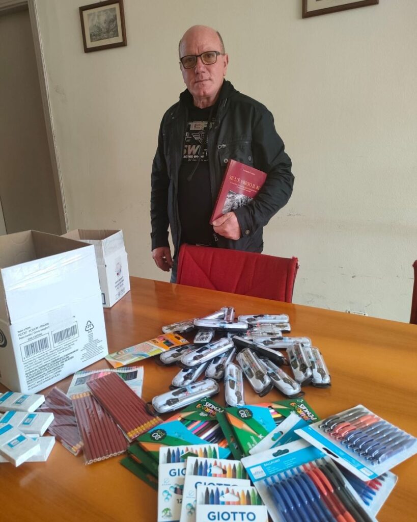 Il cittadino Rocco Atene, di Cassano all’Ionio, ha voluto fare un plauso all’iniziativa lanciata nei giorni scorsi dall’amministrazione comunale inerente lo “zaino sospeso” e ha voluto partecipare anche lui donando tantissimo materiale didattico e cancelleria. Alla consegna dello stesso erano presenti il sindaco Giovanni Papasso, il presidente del consiglio Lino Notaristefano, il vicesindaco Antonino Mungo, l’assessore alle Politiche Sociali Elisa Fasanella. Assente, invece, l’assessore alla Pubblica istruzione Annamaria Bianchi per problemi di salute.