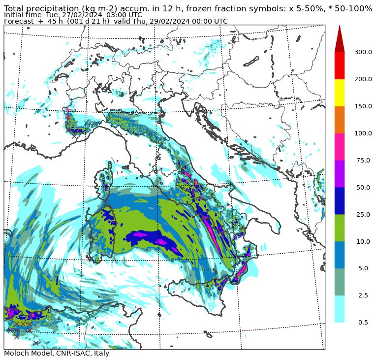 Il maltempo, però, farà sul serio sin dalle prime ore di domani, mercoledì 28 febbraio, con forti temporali sulla Sicilia occidentale (Trapani e Palermo) e piogge prefrontali torrenziali sui versanti jonici di Catania, Messina e Reggio Calabria (Etna, Peloritani e Aspromonte):