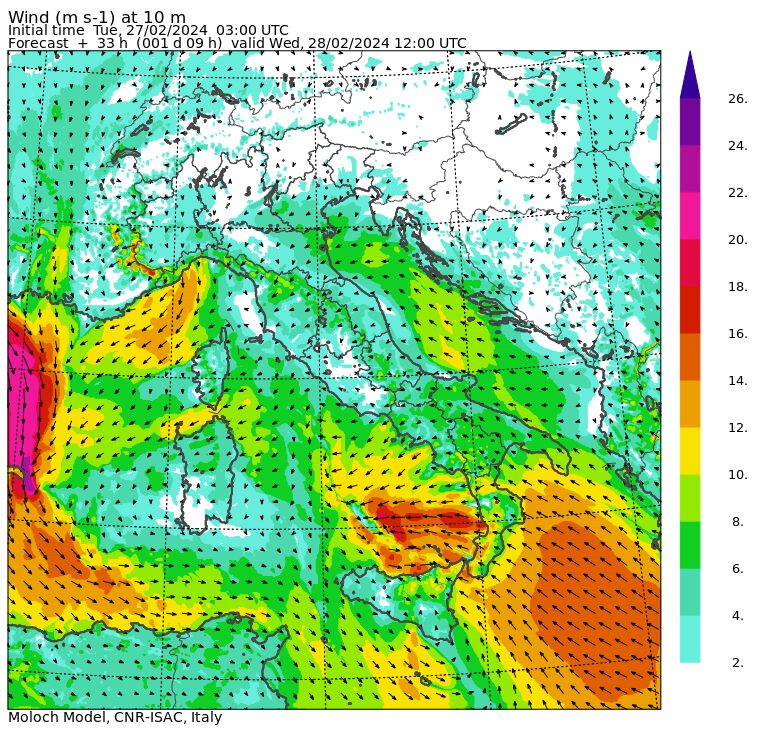 Nel pomeriggio-sera di mercoledì il maltempo risalirà la Sicilia verso nord/est e tutta la Calabria: forti temporali colpiranno gran parte del territorio, con piogge torrenziali sul versante jonico in modo particolare tra Peloritani, Aspromonte, Serre e Sila: