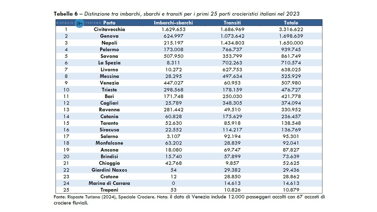 “Se per alcuni le previsioni per il 2024 – continua Francesco di Cesare – dopo le accentuate variazioni positive degli ultimi due anni, possono rappresentare una battuta d’arresto, per noi di Risposte Turismo, come abbiamo avuto già modo di sottolineare, sono da vedere come una occasione per consolidare le proprie posizioni e riflettere su se, come, e a quali condizioni puntare a crescere nelle prossime stagioni. Non è affatto detto, infatti, che la crescita dimensionale debba rappresentare sempre un obiettivo. Perché lo sia, vi devono essere le giuste condizioni. Tra esse, la capacità del sistema di offerta di accogliere più passeggeri, adeguate infrastrutture di mobilità per non mettere in difficoltà le dinamiche di spostamento di chi in quelle destinazioni vive e lavora, la volontà di leggere e gestire l’intero turismo, di cui la crocieristica fa parte, come unico fenomeno ancorché alimentato da diverse componenti. Che l’Italia sia destinata a restare tra i paesi leader della crocieristica non v’è alcun dubbio. La sfida starà su come vorrà e saprà gestire un fenomeno comunque destinato a crescere e a cambiare“, conclude di Cesare.