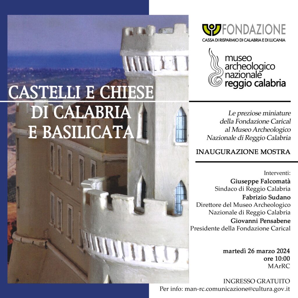 Sarà la prestigiosa sede del Museo Archeologico Nazionale di Reggio Calabria ad ospitare la mostra itinerante “Castelli e Chiese di Calabria e di Basilicata”. Dopo Cosenza, Catanzaro, Vibo Valentia e Lamezia Terme, da martedì 26 marzo le miniature di proprietà della Fondazione, realizzate dal Maestro Domenico Chiarella per la Calabria e dal Maestro Franco Artese per la Basilicata, saranno a disposizione dei visitatori e, soprattutto, delle scolaresche che potranno ammirarne la bellezza e conoscere più da vicino una parte dell’immenso patrimonio artistico e architettonico delle due regioni; venti preziosi manufatti che riproducono fedelmente alcuni tra i più importanti monumenti del territorio calabrese e lucano, come il Castello di Reggio Calabria, la Cattolica e il Castello di Stilo, la Cattedrale di Gerace e le monumentali Certosa di Serra San Bruno e Chiesa rupestre di San Pietro in Barisano di Matera.