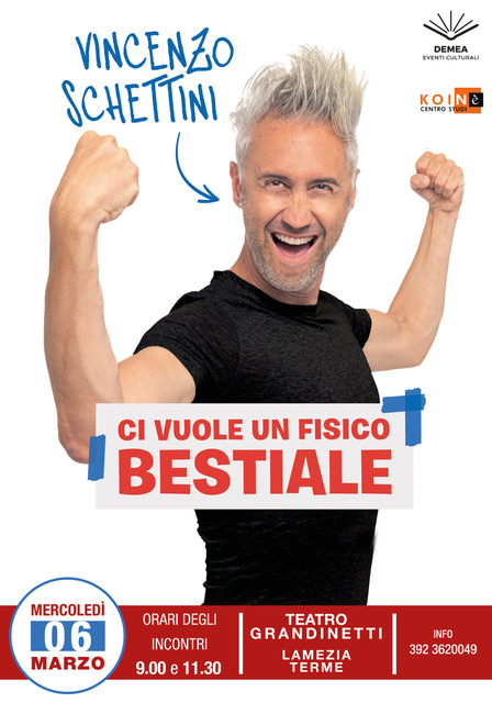La Demea eventi culturali di Roma e il prof. Raffaele Gaetano del Centro Studi Koinè esprimono soddisfazione per l’eccezionale risposta delle scuole che parteciperanno con entusiasmo agli incontri a loro riservati con il prof. Vincenzo Schettini, programmati mercoledì 6 marzo, alle ore 9:00 e alle 11:30, presso il Teatro Grandinetti di Lamezia Terme.