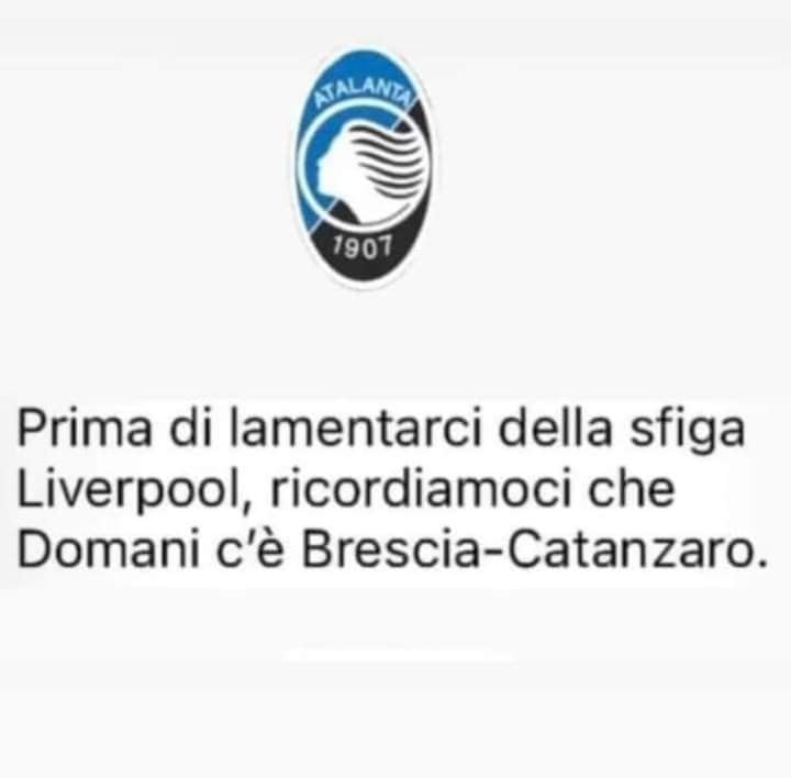 E cosa c’entra il Catanzaro, penserete voi? La frase è chiara: “Prima di lamentarci della sfiga Liverpool, ricordiamoci che domani (oggi, ndr) c’è Brescia-Catanzaro”. Il riferimento è al sorteggio di Europa League, che ha messo di fronte alla Dea – ai quarti di finale – la squadra favorita del torneo, i Reds di Klopp. E forse, ipotizziamo, per questo dovranno essere partiti gli sfottò dei rivali bresciani. La risposta nerazzurra non si è fatta attendere ed evidenzia le differenze ad oggi tra le due compagini: se una lotta per vincere l’Europa League, l’altra si trova in Serie B e anzi – pur combattendo in zona playoff – questa estate è retrocessa in Serie C sul campo, “salvata” (scherzo del destino) sempre da una calabrese.