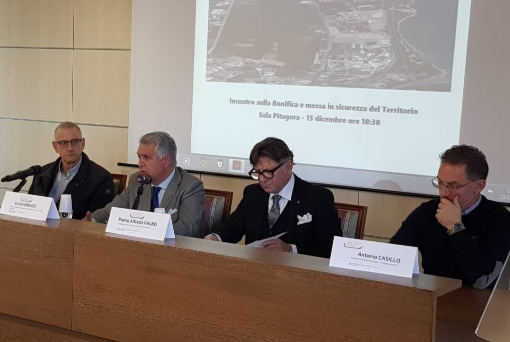 La Bonifica del Sito d’Interesse Nazionale Crotone-Cassano-Cerchiara interessa diversi Enti della Regione. Per tale ragione, la Camera di Commercio di Catanzaro, Crotone e Vibo Valentia, nelle persone del Presidente Pietro Falbo e del Vicepresidente Emilia Noce, ha organizzato l’incontro: “La Valorizzazione economica e sociale delle Attività connesse alla Bonifica e al Recupero delle Aree contaminate di Crotone”.
