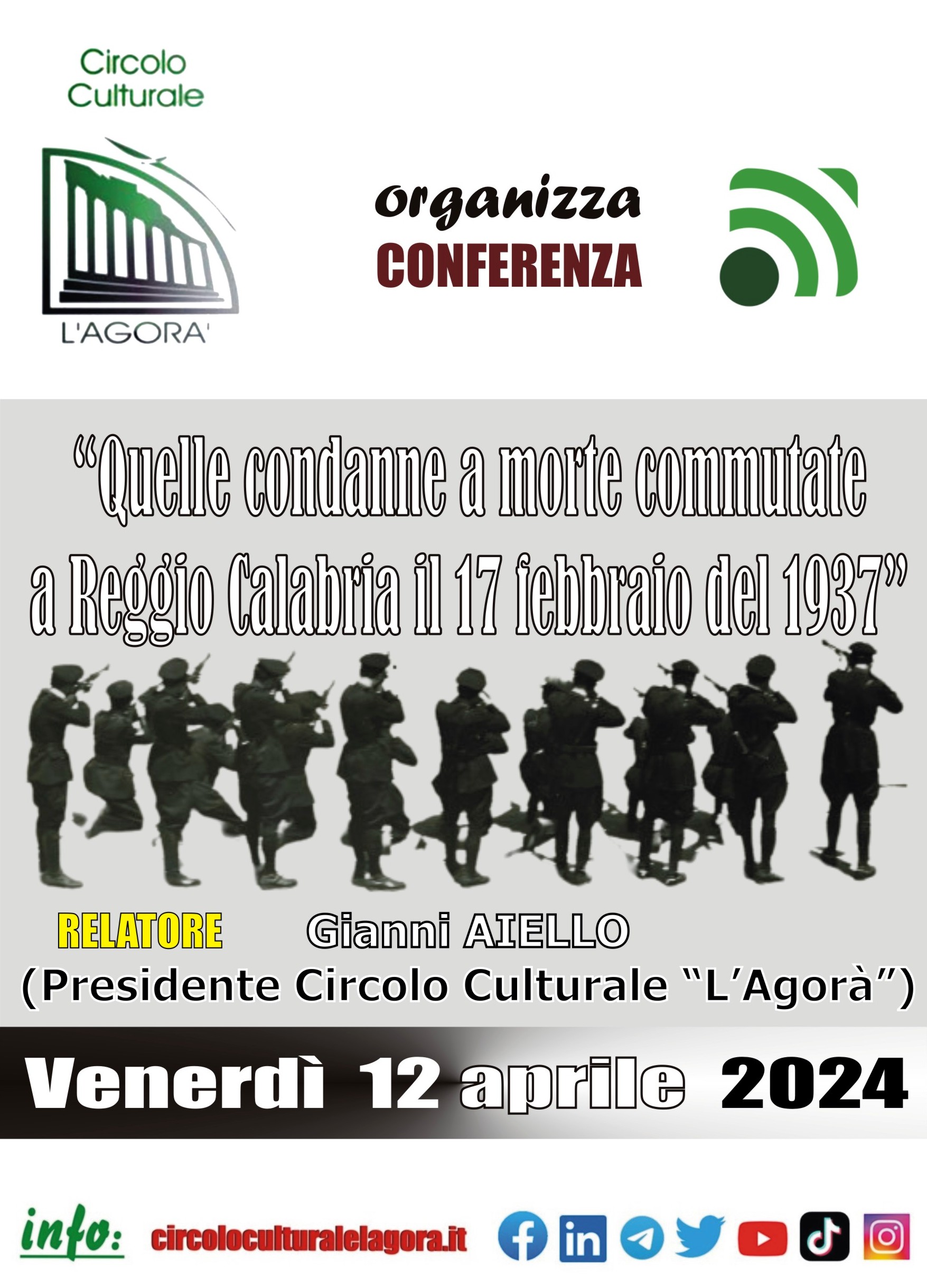 L’allora capo dello stato Enrico De Nicola respinse la grazia e il 4 marzo 1947 venne eseguita l’ultima fucilazione in Italia alle Basse di Stura vicino a Torino. Con l’entrata in vigore della Costituzione del 1 Gennaio 1948 venne abolita, l’unica eccezione prevista era in riferimento alle previsioni contenute nelle leggi militari di guerra. Rimase nel Codice Penale Militare di Guerra dal quale fu eliminata e sostituita dall’ergastolo nel 1994. Nel 2007, con legge di revisione costituzionale, si è eliminato dalla costituzione il riferimento alle possibili eccezioni relative alle leggi militari. Queste alcune delle cifre che saranno state oggetto di analisi nel corso della conversazione organizzata dal Circolo Culturale “L’Agorà”.