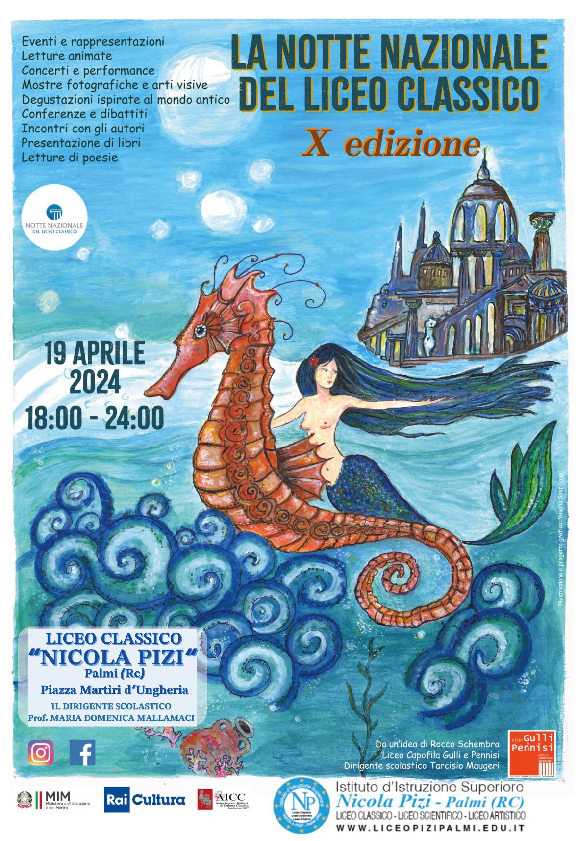 Il Classico “fa notte” – L’appuntamento ritorna puntuale ad atteso. Il Liceo Classico dell’Istituto d’Istruzione Superiore “Nicola Pizi”, guidato dalla Dirigente Scolastica, prof.ssa Maria Domenica Mallamaci, ha aderito anche quest’anno a “La notte nazionale del Liceo Classico”, giunta alla X edizione. L’appuntamento, in calendario venerdì 19 aprile, dalle ore 18.00 alle ore 24.00, proporrà ai visitatori uno straordinario programma di eventi. Gli studenti del “Pizi”, con il sapiente accompagnamento dei loro docenti, animeranno una variegata scaletta di performance tutte declinate attorno al fascino in-tramontabile della cultura classica. Nel corso dell’evento, coordinato per il “Pizi” dalla prof.ssa Clorinda Bruno, le aule ospiteranno pièce teatrali, coreografie, esibizioni musica-li, letture drammatizzate e la lectio magistralis del giudice Antonio Salvati.