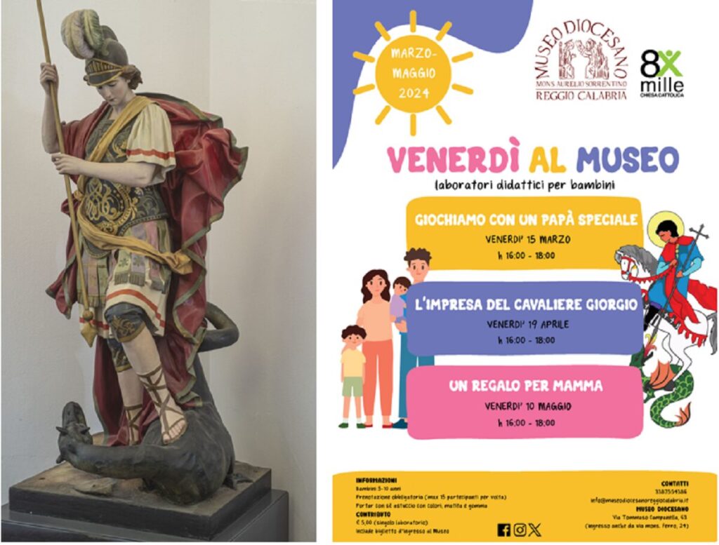 Venerdì 19 aprile h 16 sarà la volta de “L’impresa del cavaliere Giorgio”: la leggenda del Santo cavaliere, illustrata dallo stesso Giorgio, personaggio guida, s’intreccerà alla visita delle collezioni museali e, in particolare, delle opere che ne documentano la vita e le imprese, per poi cedere al racconto della nascita della devozione reggina a San Giorgio, Patrono della città, alternando giochi e attività. Richiesta la prenotazione contattando il Museo al n. 3387554386.