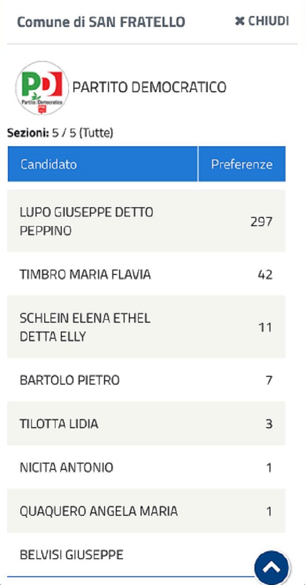 Andiamo a vedere le preferenze nelle cittadine dove l’onorevole Leanza è maggiormente radicato, e cioè a San Fratello, Cesarò e San Teodoro. Il dato sembra chiaro ed inequivocabile con Lupo che ha preso la maggior parte delle preferenze mentre Maria Flavia Timbro ed Elly Schlein sono relegate a comparsa. A Messina città in molte sezioni (una trentina) lo “straniero” Lupo ha preso più voti della candidata locale.