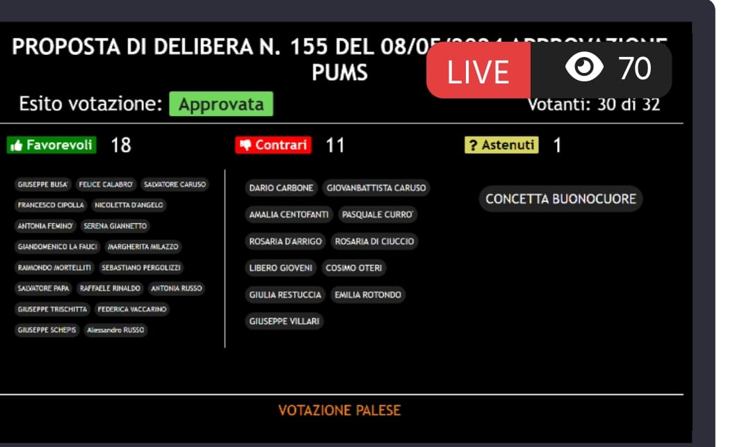 Nella seduta di oggi, il Consiglio comunale di Messina con 18 voti favorevoli ha approvato la delibera del Piano Urbano della Mobilità Sostenibile comprensivo dei piani di settore, mobilità pedonale, mobilità ciclistica, trasporto pubblico locale e sicurezza stradale; della valutazione ambientale strategica (VAS) e della valutazione di incidenza ambientale (VINCA). Ora Sicilia e Pd sono determinanti per l’approvazione del Pums.