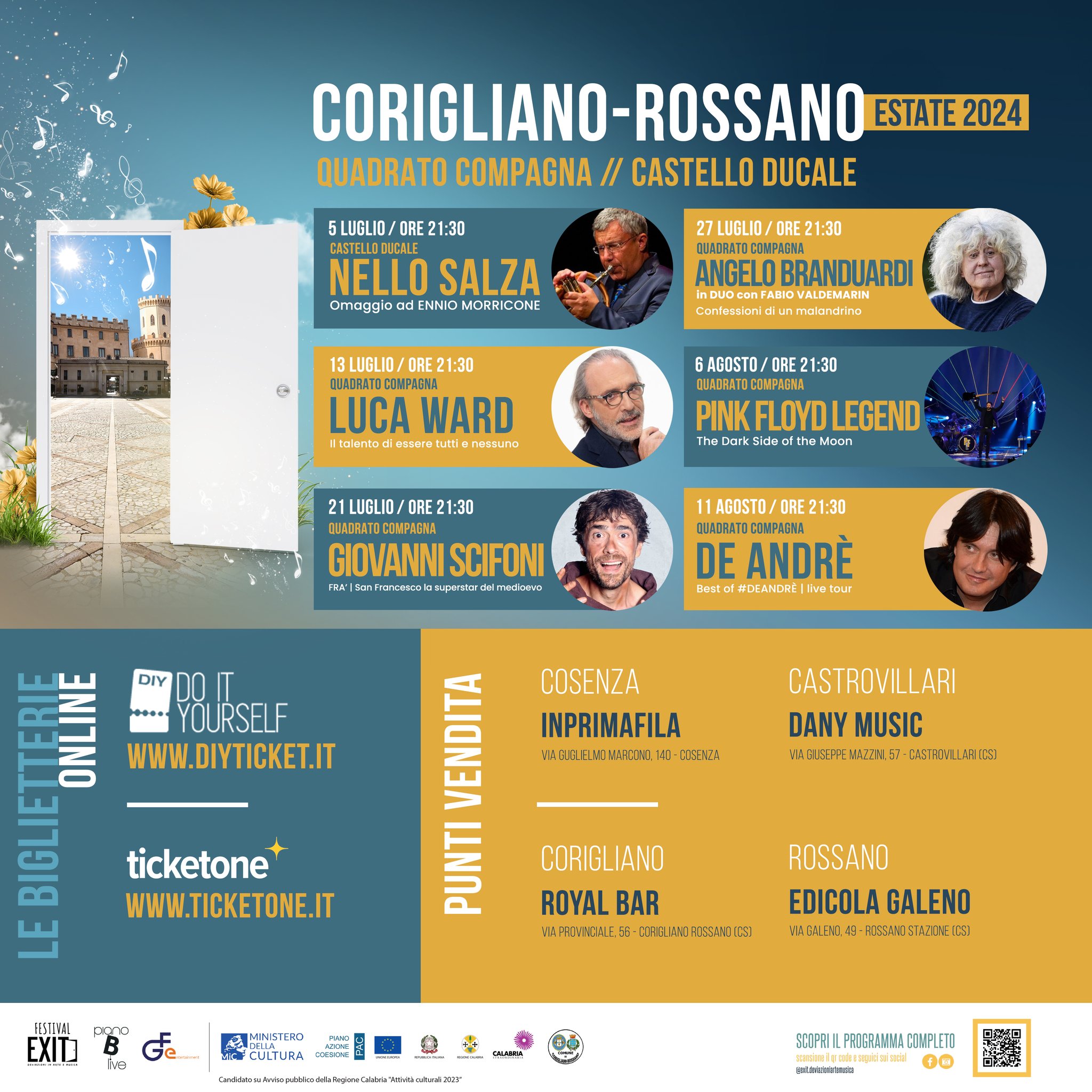 Il Festival “EXIT. Deviazioni in Arte e Musica” torna con uno straordinario appuntamento nella meravigliosa cornice del Castello Ducale di Corigliano. Venerdì 5 luglio è la volta di Nello Salza in concerto con un “Omaggio ad Ennio Morricone”. La Tromba del Cinema italiano, il trombettista interprete delle più celebri colonne sonore del grande schermo, anche internazionale, e collaboratore del Maestro Premio Oscar Ennio Morricone, si esibirà con i suoi brani più famosi.