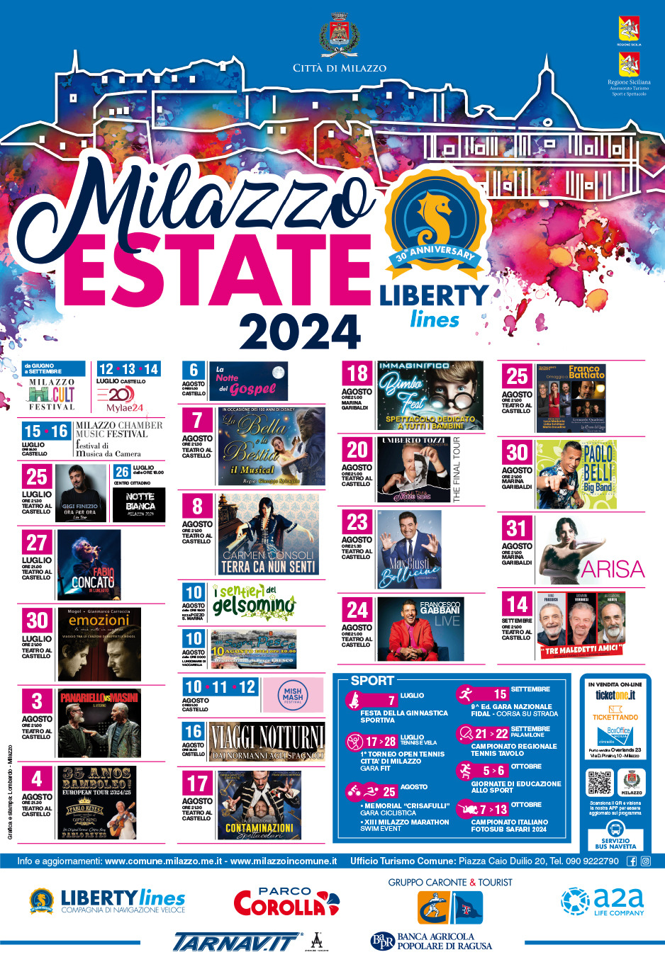 Al castello di Milazzo poi, l’8 agosto arriverà Carmen Consoli con un concerto dedicato alla sua terra d’origine: “ Terra ca nun senti”. La scaletta del concerto è composta da brani tradizionali siciliani oltre che da canzoni di artisti meravigliosi nati nella nostra regione come Franco Battiato, Rosa Balistreri e la stessa Consoli; l’insieme compone una grande narrazione in note della Sicilia con i suoi paesaggi, storie e personaggi, filtrata dallo sguardo e dalla sensibilità di Carmen.