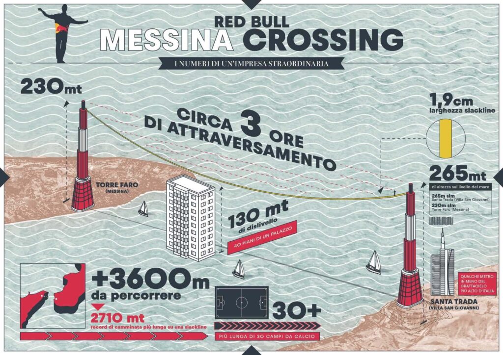 Quando l’impresa è tale da rendere difficile persino trovare le parole per descriverla al meglio, in nostro soccorso possono venire i numeri. Potrebbe essere questa la chiave di lettura più efficace per mettere nella giusta prospettiva l’incredibile attraversamento dello Stretto di Messina ad opera dello slackliner estone Jaan Roose, già protagonista di numerose performance da brivido e detentore di diversi record del Mondo. Una lunga lista di successi a cui ora l’atleta Red Bull ambisce ad aggiungere la gemma più preziosa.