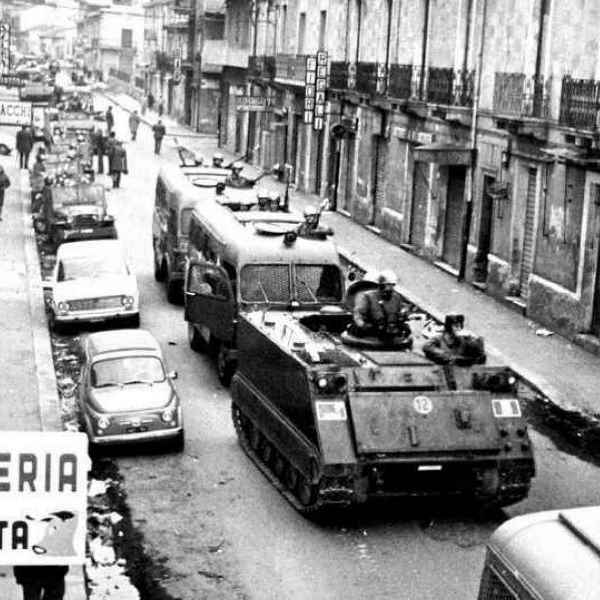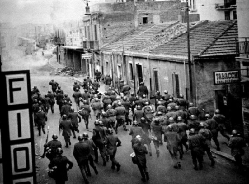 Il 14 Luglio del 1970 il Sindaco di Reggio Calabria, Piero Battaglia tenne un discorso a Piazza Italia. Erano passati nove giorni dal famoso “rapporto alla città”, in cui lo stesso Sindaco, si pose contro il suo partito, la Democrazia Cristiana, per la scelta operata dal Governo di assegnare il capoluogo di regione a Catanzaro. Sempre nella stessa sera alcuni giovani vennero arrestati dalle forze dell’ordine con l’accusa di aver bloccato il traffico nei pressi della Stazione Lido. Da lì lo scoppio dei “Moti di Reggio”. La protesta fu durissima e la città fu letteralmente blindata: migliaia i carabinieri, i poliziotti e militari dell’esercito inviati in Calabria per sedare la protesta. Il bilancio finale fu terribile: 6 morti, centinaia di feriti, migliaia di arrestati.