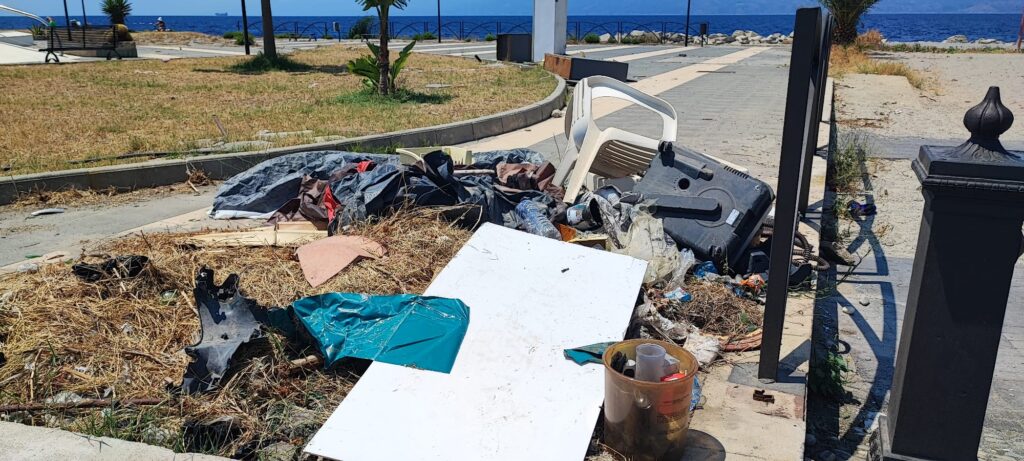 Non solo le buste di ogni tipo all’ingresso centrale dell’area, più volte segnalate nei mesi, ma anche la presenza di rifiuti di varia natura. Come si può vedere nelle immagini a corredo dell’articolo – realizzate da Graziano Tomarchio – è altissima la presenza di ingombranti, di sedie di plastica, di buste varie e di armadietti di ferro. Una vera e propria discarica in un luogo che dovrebbe essere deputato alla tranquilla passeggiata in riva al mare.