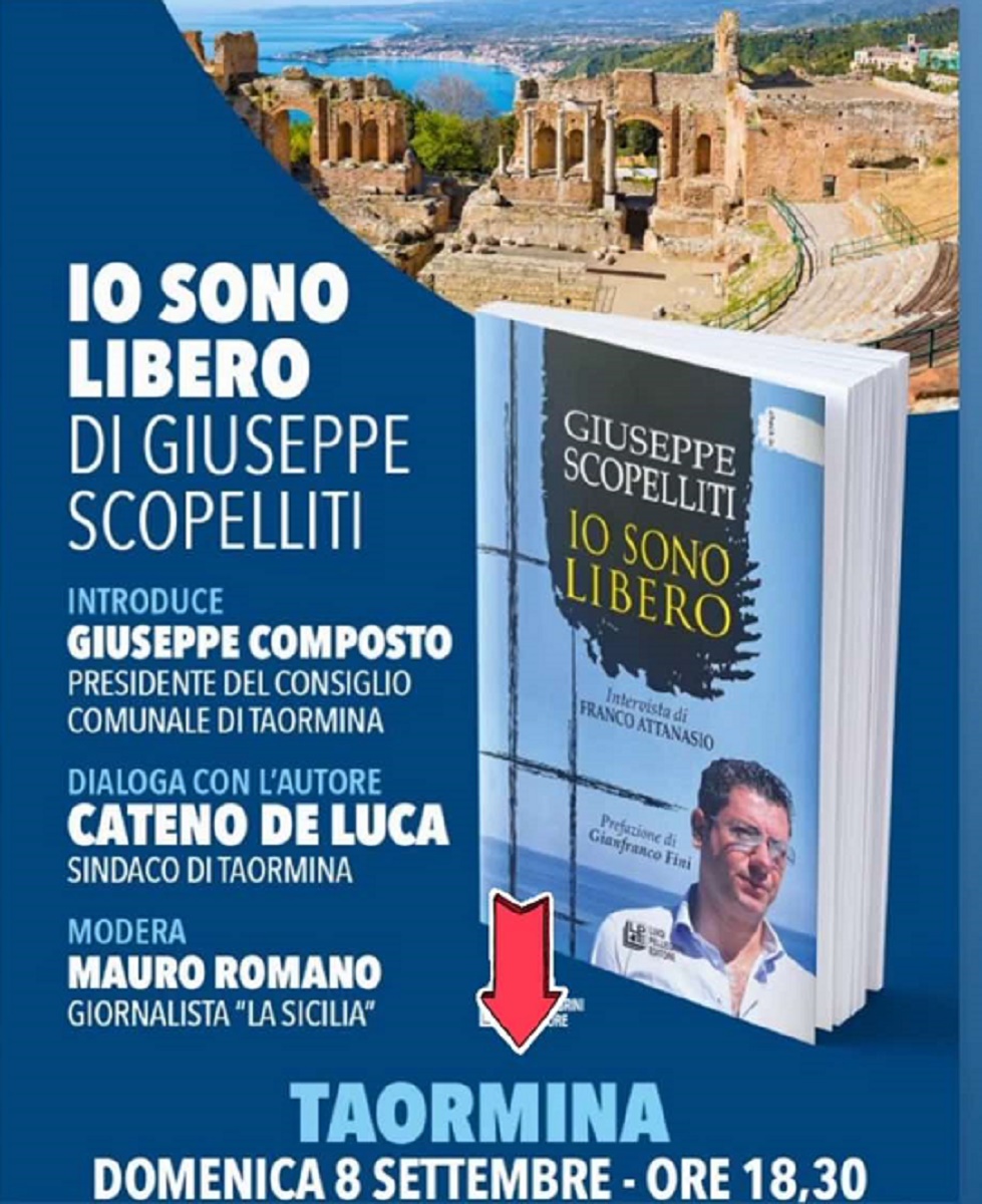Continua il lungo tour di Giuseppe Scopelliti, ex sindaco di Reggio ed ex Governatore della Calabria, in giro per l’Italia, a far conoscere il suo libro “Io sono libero”. Domenica, 8 settembre, Scopelliti sarà protagonista a Taormina alle ore 18:30.