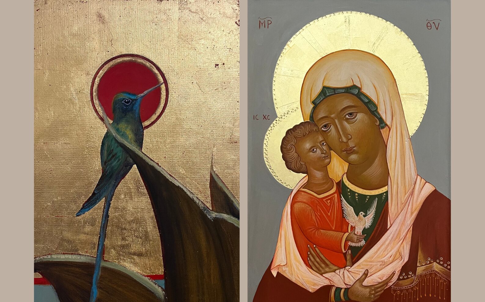 Le icone bizantine fanno parte di una rappresentazione unica del sacro, senza umanizzarlo, per questo le immagini sono trasfigurate, celestiali, come ha spiegato Mimmo Candela. I visitatori potranno cogliere gli elementi comuni nelle opere dei due artisti, come l’uso dell’oro, che rimanda alla simbologia del sacro, tra gli altri.