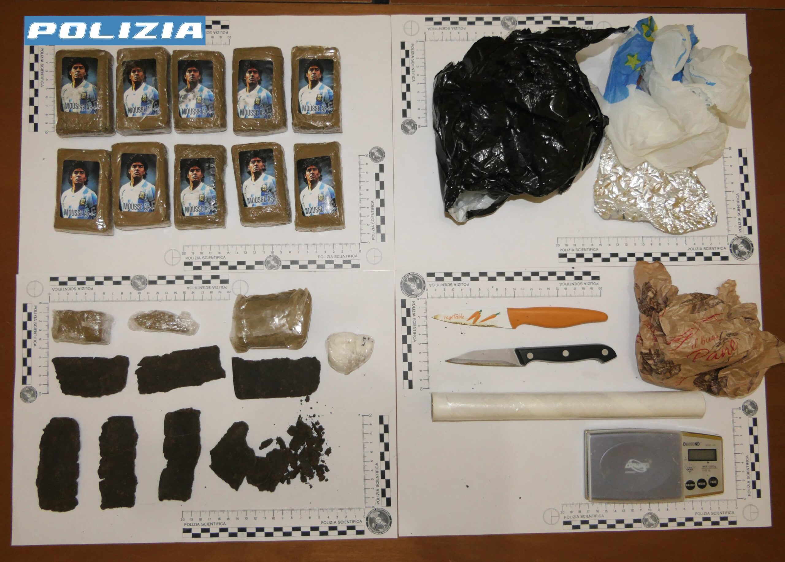 A Sant’Agata di Militello, nel corso di un servizio di perlustrazione delle vie cittadine, una pattuglia della Polizia di Stato ha notato un uomo condurre un veicolo di grossa cilindrata a forte velocità. L’equipaggio ha pertanto avviato un pedinamento allo scopo di verificare l’identità del conducente. Una volta raggiunta l’auto, gli agenti della Polizia di Stato hanno sottoposto a controllo il santagatese, perquisendone anche il veicolo. Con sorpresa degli operatori sono stati rinvenuti circa 15 grammi di cocaina. Gli agenti a quel punto hanno iniziato una perquisizione presso l’abitazione dell’uomo, dove hanno trovato oltre un chilogrammo di hashish e tutto l’occorrente per il confezionamento delle dosi.