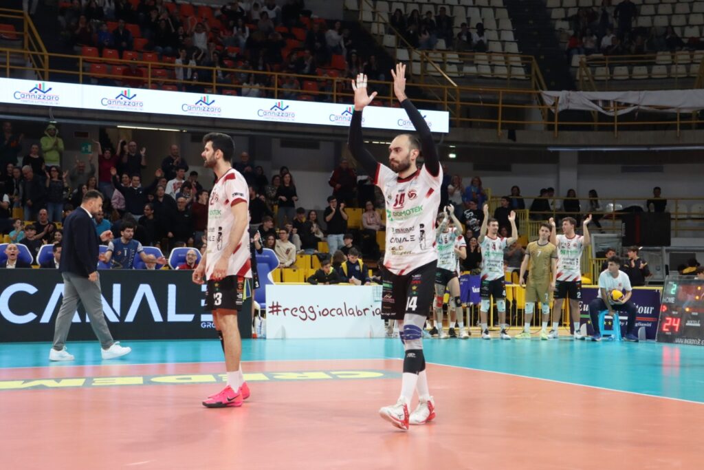La Domotek Volley Reggio Calabria festeggia il primo successo nella semifinale Playoff di Serie A3 della sua storia. La formazione reggina supera 3-1 Acqui Terme in Gara-1 davanti a un PalaCalafiore gremito e festante come non mai! I reggini hanno giocato una grande gara in simbiosi con il proprio pubblico, prezioso e decisivo nelle difficoltà, soprattutto nel terzo set che sembrava non finire mai.
