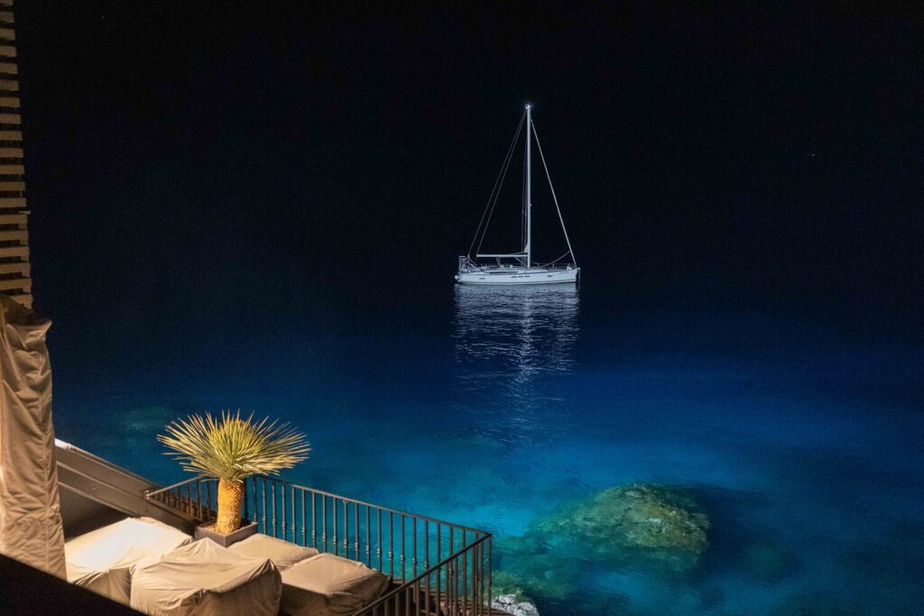 E così, fra mare e rocce, in un paesaggio di una bellezza imperante, come un quadro mai statico ma che, sguardo dopo sguardo, cambia di continuo le sfumature dei suoi colori, come l’acqua che lo circonda, nasce Origini. Uno spazio, un’architettura, pesati far dominare l’esperienza del panorama immersivo. Pensato nella sua matericità, nei suoi colori e nelle luci per scomparire nel paesaggio. Pietra, ferro, vetro e verde mediterraneo. Un luogo dove il tempo rallenta, e ogni respiro profuma di sale e vento.