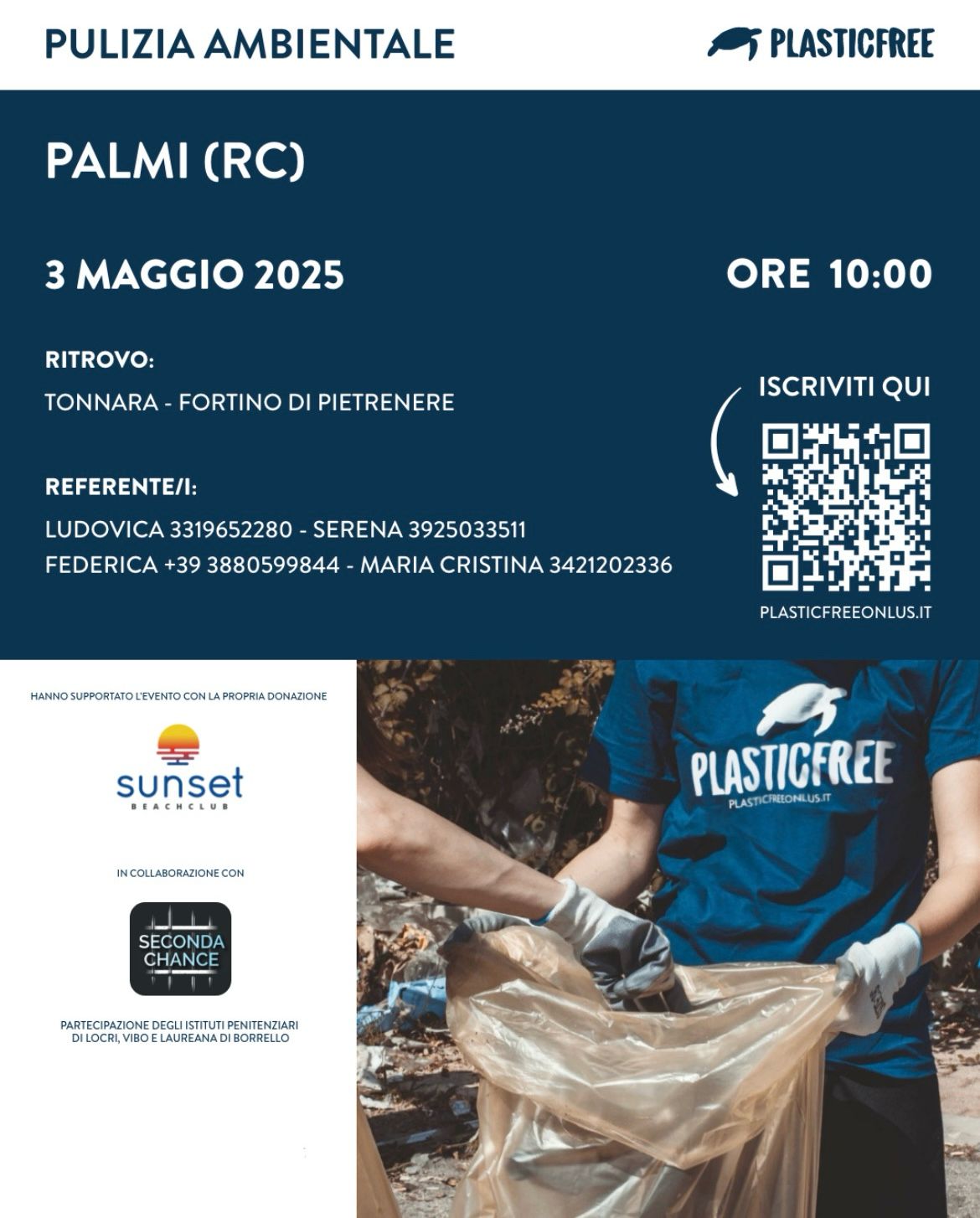 Domani, sabato 3 maggio, Palmi (Reggio Calabria) sarà una delle tredici città italiane coinvolte nell’iniziativa nazionale promossa da Plastic Free Onlus e Seconda Chance, che vedrà impegnati fianco a fianco detenuti in permesso premio e volontari nella pulizia del territorio. In Calabria, l’appuntamento sarà presso il Fortino di Pietrenere per ripulire la spiaggia della Tonnara di Palmi, in provincia di Reggio Calabria. Protagonisti della giornata saranno nove detenuti provenienti dagli istituti di Locri, Vibo Valentia e Laureana di Borrello. Per il terzo anno consecutivo, il Comune di Palmi accoglierà l’evento e provvederà alla colazione al sacco per i detenuti che parteciperanno alla raccolta, grazie alla collaborazione con la Magistratura di Sorveglianza e all’impegno condiviso per la costruzione di percorsi di responsabilizzazione e inclusione.