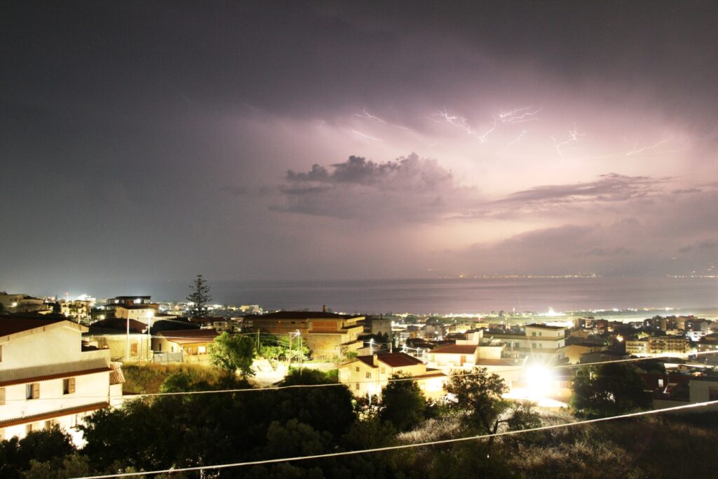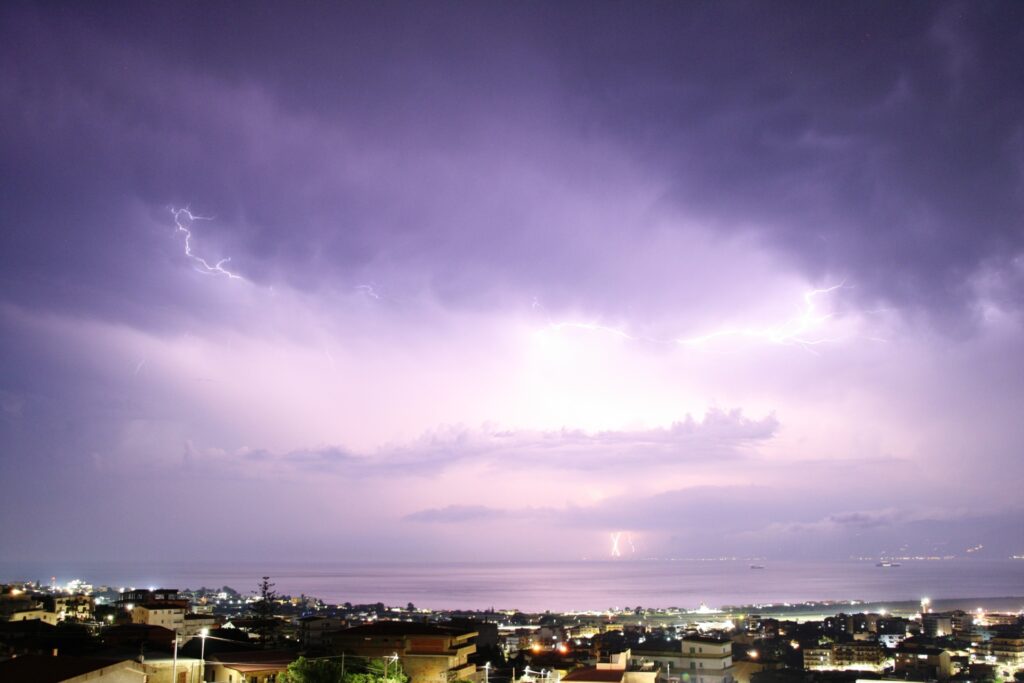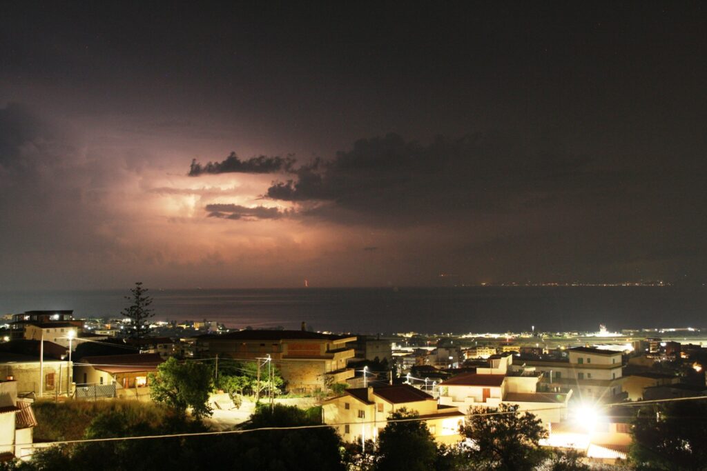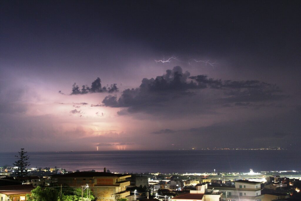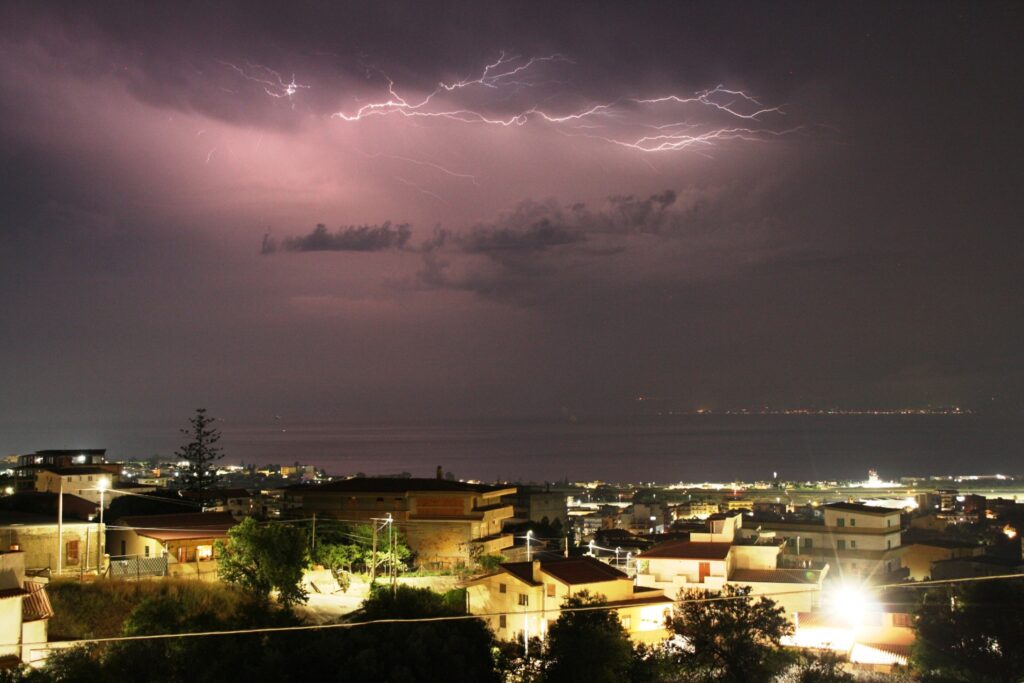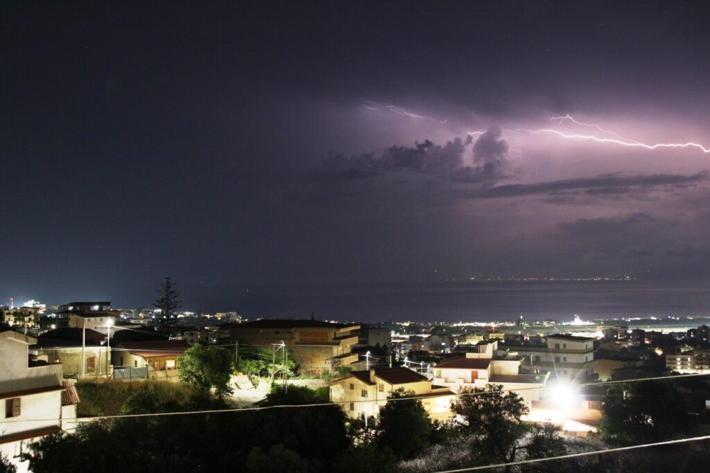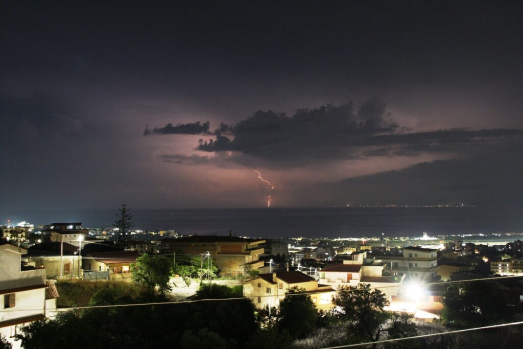 Il temporale ha illuminato a giorno anche il cielo dello Stretto di Messina, ben visibile da Reggio Calabria come possiamo vedere nelle immagini a corredo dell’articolo.