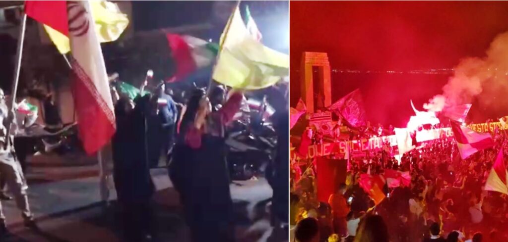 A fronte di tutto questo, hanno fatto il giro del mondo e suscitato generale ilarità le grottesche immagini dei festeggiamenti di qualche centinaio di abitanti di Teheran che ieri sera è sceso in strada con le bandiere del regime ad esultare e festeggiare per la supermega risposta bellica dell’Iran all’attacco degli USA: nei minuti precedenti, infatti, l’Iran aveva lanciato 14 missili sul Qatar, determinando lo sdegno di tutti i Paesi arabi. Però aveva avvertito prima: le basi militari USA erano state evacuate e tutti i missili sono stati intercettati dalle difese americane. Tranne uno, che era diretto nel deserto e quindi non c’era motivo per intercettarlo. Donald Trump non ci ha pensato due volte e ha umiliato l’Iran in mondovisione: “L’Iran ha ufficialmente risposto alla nostra distruzione dei loro impianti nucleari con una reazione molto debole, come ci aspettavamo, e che abbiamo contrastato in modo molto efficace. Sono stati lanciati 14 missili: 13 sono stati abbattuti e 1 è stato ‘lasciato libero” perché lanciato in una direzione non pericolosa. Sono lieto di annunciare che nessun americano è rimasto ferito e che non si sono verificati danni. Voglio ringraziare l’Iran per averci avvisato tempestivamente, questo ha permesso di non perdere vite umane e di non avere feriti. Forse l’Iran può ora procedere verso la pace e l’armonia nella regione”.