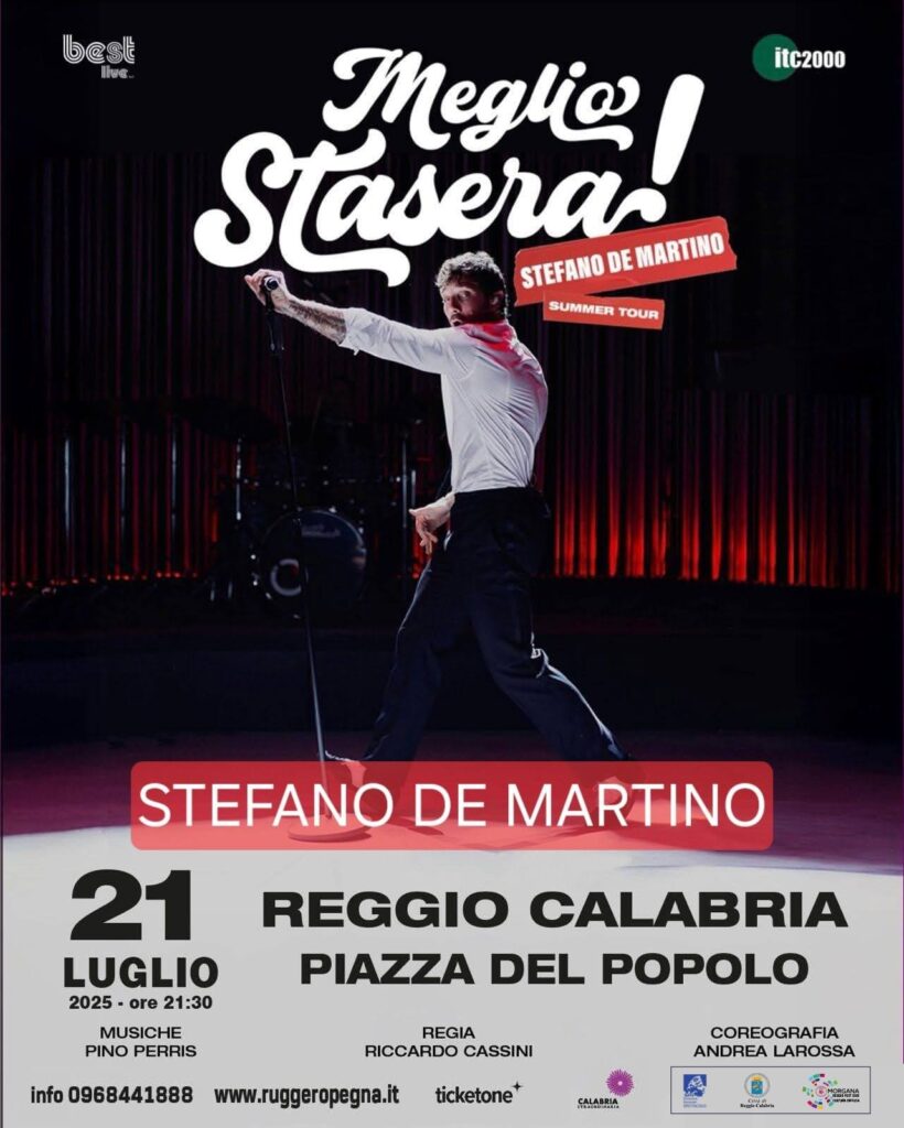 Tutto pronto per Piazza del Popolo: Arte, Musica e Teatro, evento incluso nel progetto ReggioFest2025 – Cultura Diffusa promosso dal Comune di Reggio Calabria in base all’accordo di programma M.I.C. – Comune Capoluogo della Città di Reggio Calabria. Piazza del Popolo: Arte, Musica, Teatro, progetto della Show Net srl, ideato e diretto da Ruggero Pegna, si articolerà in tre giorni di spettacoli che spazieranno dalla musica al teatro leggero, fino al teatro urbano internazionale: il 19 luglio l’eccezionale concerto dello Stefano Bollani quintet, il 20 luglio la Festa del Sole con Fuoco della Compagnia dei Folli di Ascoli Piceno, il 21 luglio lo show Meglio Stasera di Stefano De Martino.