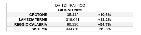 Passeggeri degli Aeroporti calabresi a Giugno 2025