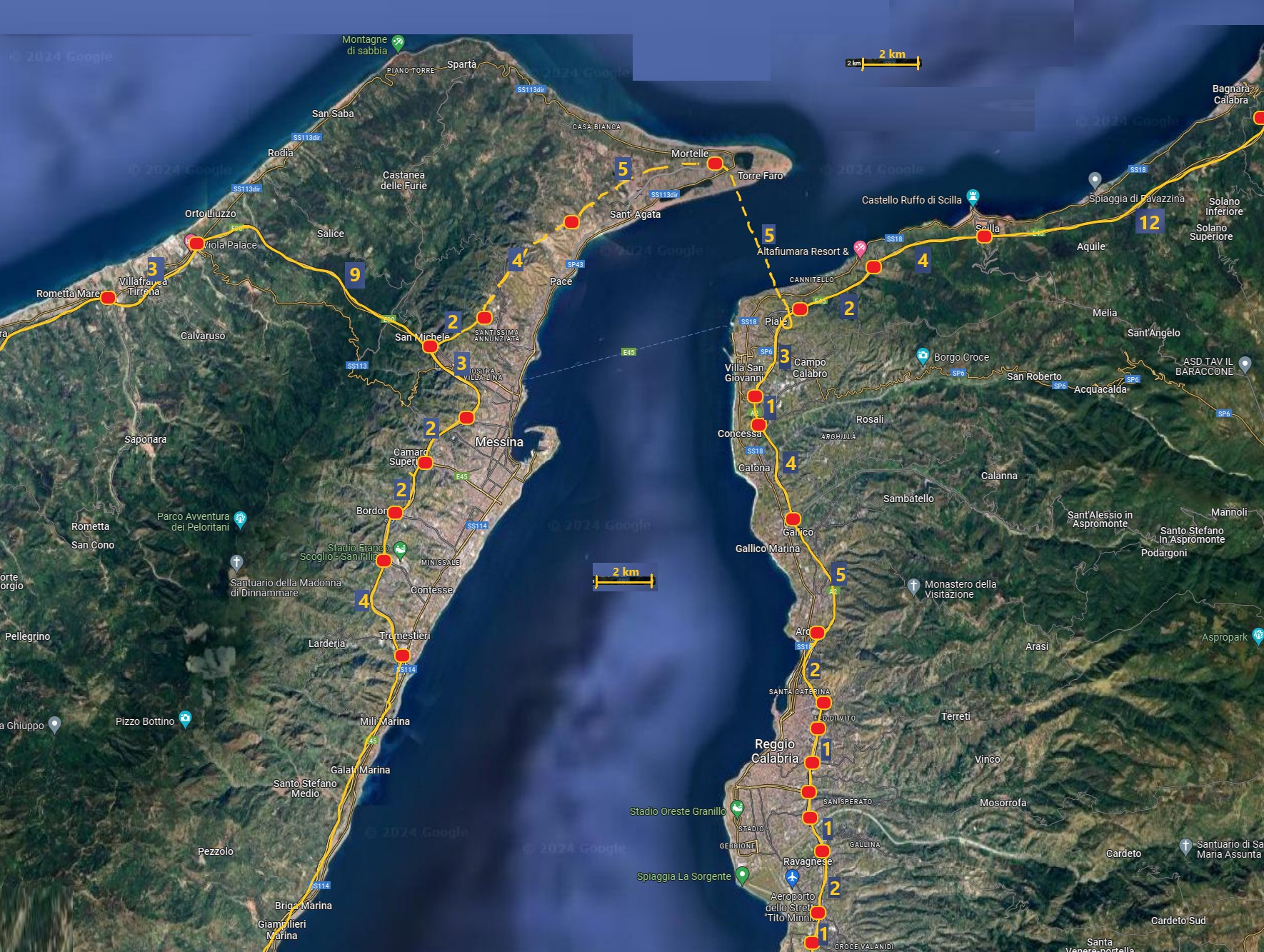 E’ invece di competenza di RFI il completamento, nell’ambito della realizzazione della linea Av/Ac Battipaglia – Reggio Calabria, del lotto Buonabitacolo-Praia e del lotto Gioia Tauro- Reggio Calabria; la realizzazione del collegamento, entro il 2032, tra l’intervento di competenza Stretto di Messina e la linea tradizionale Battipaglia-Reggio Calabria, costituito dai rami di connessione alla linea ferroviaria verso Villa San Giovanni e Reggio Calabria; la realizzazione, entro il 2032, dei rami di collegamento tra la galleria Santa Cecilia e la linea Messina-Catania; la realizzazione della nuova Stazione di Messina Gazzi, previa condivisione con gli enti locali per la rifunzionalizzazione di Messina Centrale.