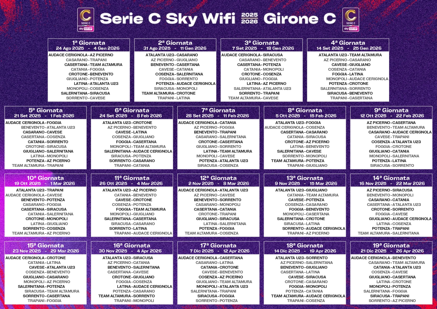 I calendari di Serie C