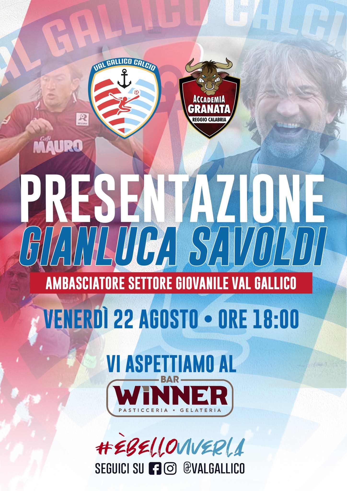 Venerdì 22 agosto, alle ore 18 presso il Bar Winner (Gallico – RC) appuntamento da non perdere. Ospite d’onore Gianluca Savoldi, attaccante che non ha certo bisogno di presentazioni, con importanti trascorsi nella città dello Stretto in Serie B ed in Serie A, con tanti e pesanti gol realizzati.